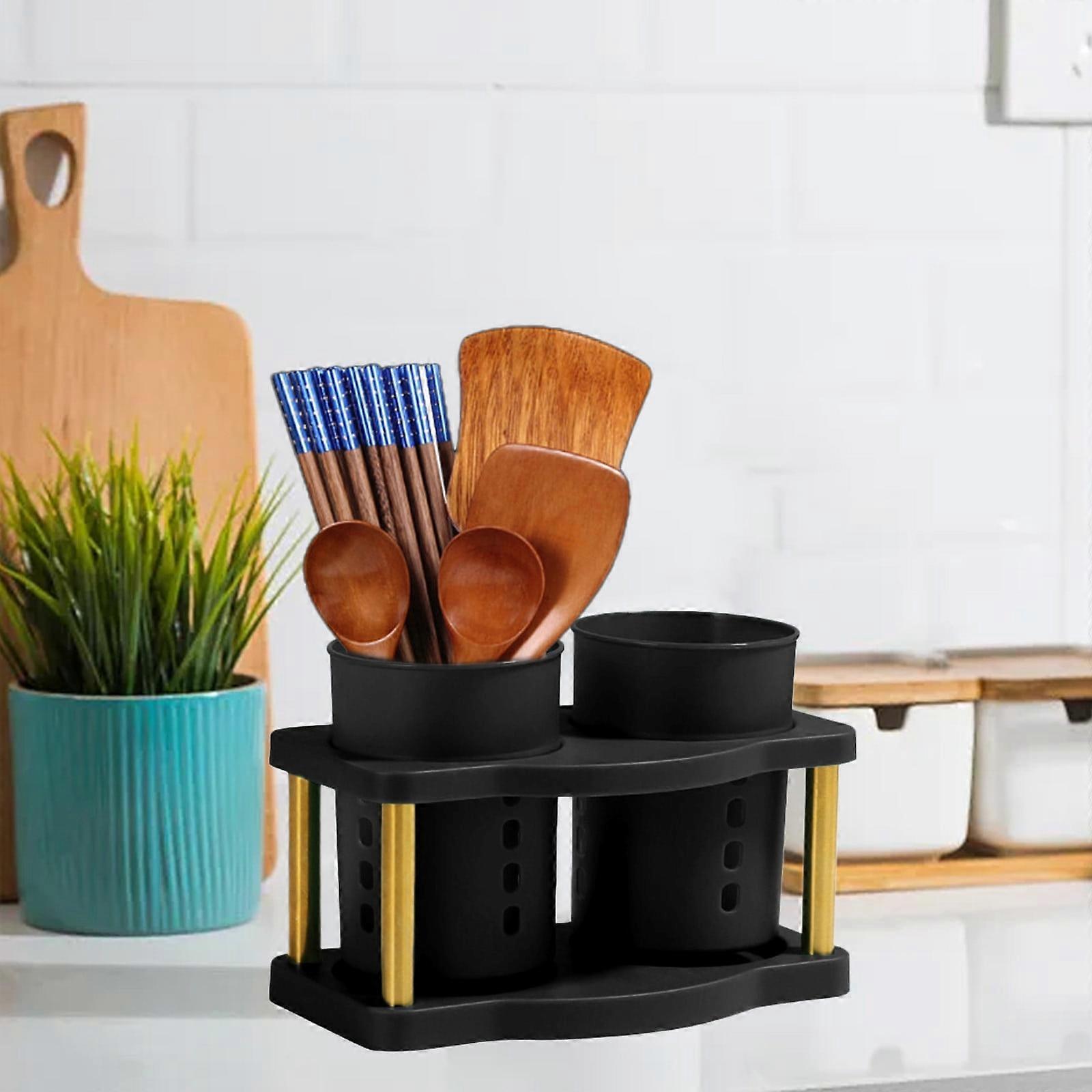 WJSXC Removable Utensil Holder Box, Double Cut Out Drainer for Knife & Fork, Countertop Storage, Black