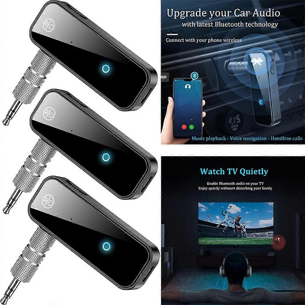 1.Simply insert the Bluetooth AUX adapter into the AUX 3.5mm jack on your car stereo, and then make, answer, and reject hand-free calls with one button, enjoy music in your phone and listen to navigation voices. Simple, slim design minimizes footprint on car dashboard. Bluetooth 5.0 technology enhances your safety, pleasure and fun while driving. 2.Bluetooth 5.0 Benefits Bluetooth 5.0 is the latest version of the Bluetooth wireless communication standard and have various improvements: low energy, dual audio, more speed, distance, and throughput. It also promises CD quality audio over lower 1 Mbps speeds, so 2 Mbps speeds should enable even better wireless audio quality. Bluetooth is backwards compatible. We recommend you buy new Bluetooth 5.0-enabled peripherals to enjoy all the benefits. 3.Bluetooth speaker Make your old stereo/speaker system wireless now by using the Bluetooth adapter. Unshackle yourself from cables while enjoying CD-quality music. 4.Bluetooth TV Create non-disturbing TV watching experience. Use the adapter to cut off TV sound and enjoy quietly TV programs without disturbing others. 5.Bluetooth PC Bluetooth is unavailable on many old desktop PCs. It is a good idea to enable Bluetooth by using this small device Bluetooth adapter. Simply insert the 3.5mm plug into the audio output jack on the PC’s audio card, and use the attached Micro USB cable to connect a spare USB port and power the adapter. Specifications Interface: 3.5mm AUX jack Battery: 140mAh Li-ion Transmission rate: 100Mbps Working frequency: 2.4MHz Effective range: 10m/33ft Bluetooth: 5.0 Installation: Plug & play Size : 13.5x8.5x4.5cm Package: 1/2/3/4 adapter Easily add Bluetooth to your car audio systems, home stereos, speakers, wired headphones via the auxiliary 3.5mm AUX socket - Minimal footprint slim design with 3.5 mm plug. Plug & play, easy setup, one button operation, clear status indicator Latest version 5.0 of Bluetooth wireless communication standard, Low latency, Noise cancelling, improved speed & range, dual audio and backwards compatible CVC8.0 Noise Cancellation and DSP technologies eliminate echo and block out intrusive background noise and create lossless audio CD-class quality music Hands-free Bluetooth call and navigator voice via built-in microphone; 4-hour continuous work via the built-in li-ion rechargeable 140mAh battery Make easily your TV / projector Bluetooth-enabled by using the transmitter (Tx) mode via the 3.5mm audio jack
