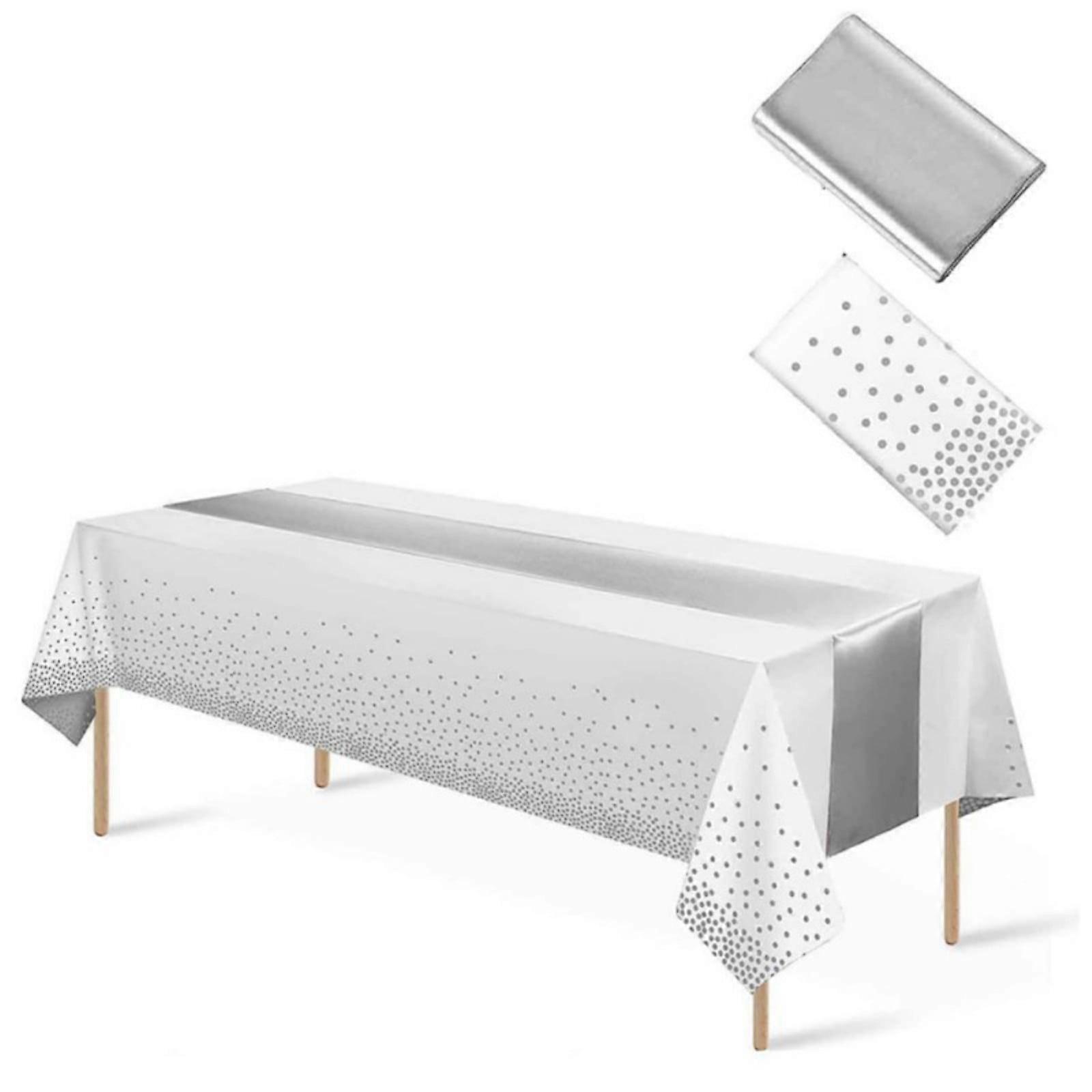 Plastic Tablecloth, Dot Confetti Rectangle Plastic Disposable Tablecloth for Birthday Wedding Engagement Anniversary Party Decorations, 54 x 108 Inch
