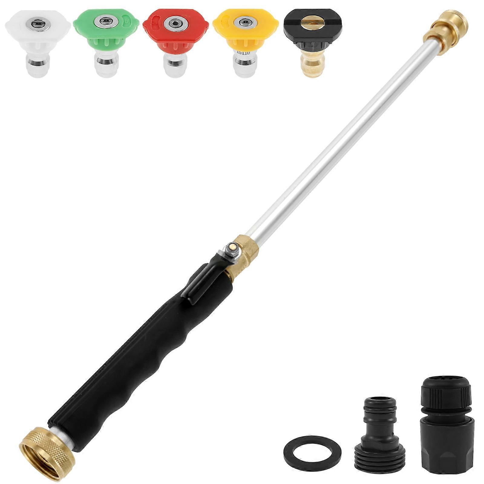 Package Including: 1 × High Pressure Water Jet 5 × Nozzle 1 × Black Connector Highlight description: Convenience and Compatibility: Our garden hoses connect seamlessly with most standard garden hoses, making them extremely easy to use. Cleanliness and Ease: Make your daily chores a breeze with our heavy-duty metal hose nozzles. Unleash the power of a professional-grade power washer from your garden hose, sweeping away dirt and restoring shine to your surface. Versatile Cleaning: Our versatile high-pressure cleaning rod is versatile and five interchangeable nozzles put control at your fingertips for precise adjustment for gentle flushing or powerful spraying. Whether it's a delicate flower bed or a stubborn driveway stain, this high pressure power cleaning stick is perfect for any challenge. Precision Quality Engineering: We use strong metal copper joints that are durable and capable of tough tasks. The straight barrel provides unmatched stability and accuracy, enabling you to perform precise local cleaning, ensuring that every task is accomplished with ease and precision. Water Efficient: Through precise design and control, the cleaning task can be completed in a short time, which is more water efficient than traditional cleaning methods. Detailed description: Description: The fast and efficient cleaning process saves time and effort, allowing you to complete a large number of cleaning tasks in a relatively short time. Key Feature: Proper pressure and water flow Settings will not cause damage to the surface of the object being cleaned, such as car paint, building paint, etc. Specification: Texture: Alloy + Copper + 304 Stainless Steel Size: 44.8 × 3.8 × 6.8cm Note: 1. There may be slight differences between the picture and the actual color of the commodity. We will try our best to show you the exact color. 2. Please allow slight dimension differences due to manual measurement. Convenience and Compatibility: Our garden hoses connect seamlessly with most standard garden hoses, making them extremely easy to use. Cleanliness and Ease: Make your daily chores a breeze with our heavy-duty metal hose nozzles. Unleash the power of a professional-grade power washer from your garden hose, sweeping away dirt and restoring shine to your surface. Versatile Cleaning: Our versatile high-pressure cleaning rod is versatile and five interchangeable nozzles put control at your fingertips for precise adjustment for gentle flushing or powerful spraying. Whether it's a delicate flower bed or a stubborn driveway stain, this high pressure power cleaning stick is perfect for any challenge. Precision Quality Engineering: We use strong metal copper joints that are durable and capable of tough tasks. The straight barrel provides unmatched stability and accuracy, enabling you to perform precise local cleaning, ensuring that every task is accomplished with ease and precision. Water Efficient: Through precise design and control, the cleaning task can be completed in a short time, which is more water efficient than traditional cleaning methods.