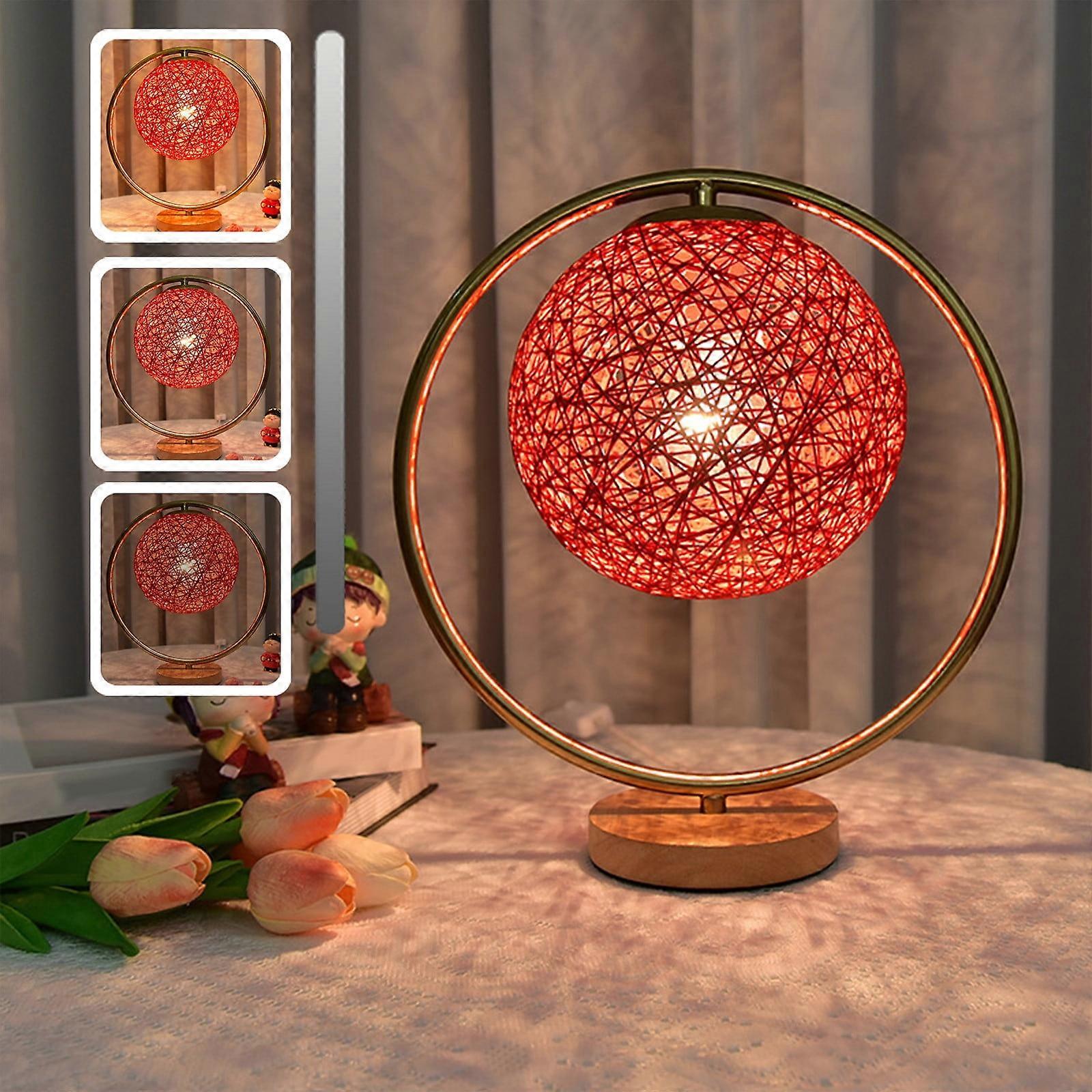 PRETXORVE Night Light, Table Lamp for Bedroom, Dimmable Nightstand Lamp with Handwork Rattan Shade, Solid Wood, LED Bulb, for Living Room Office Dorm