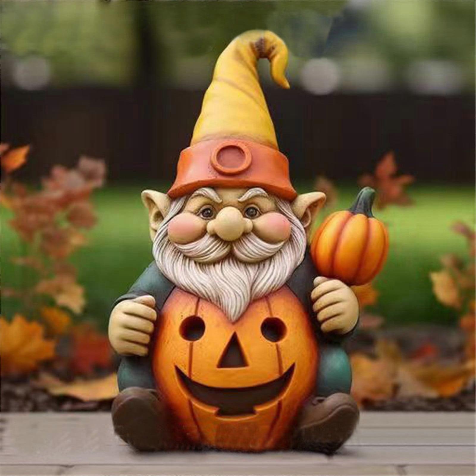 Halloween Decorations Outdoor Clearance, Resin Pumpkin Gnome Statue with Light, Garden Decoration Compatible with YANHAIGONG