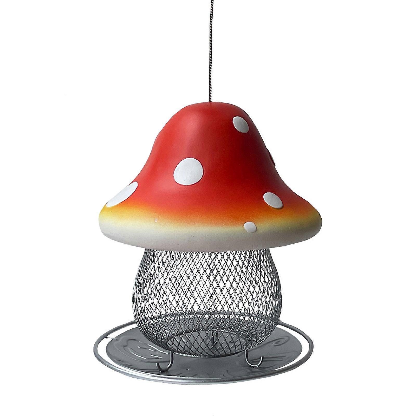 HKUKY Solar Mushrooms Bird Feeder, Wild Bird Feeders For Outside, Hanging Bird Feeder Squirrel Proof For Outdoor Garden Backyard Decor