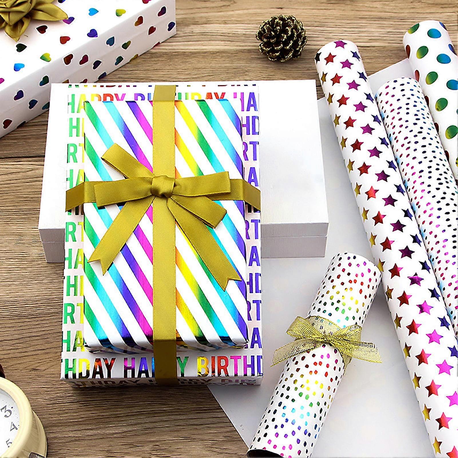 SUSUchens 1 Roll Wrapping Paper Heart Star Print Widely Applied DIY Decor Christmas Wedding Gift Wrapping Paper for Valentine's Day