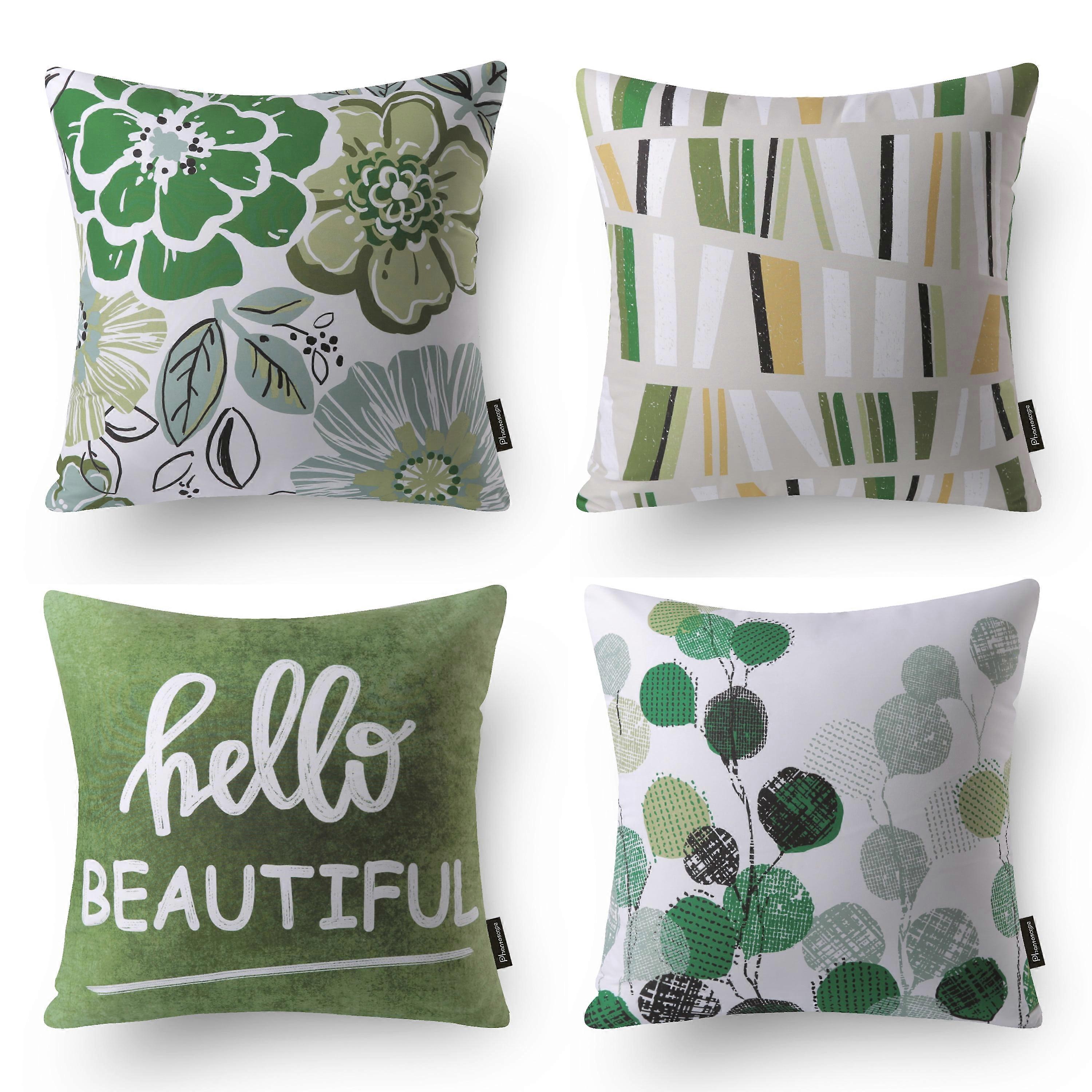 Phantoscope Sweet Home Series Decorative Throw Pillow Covers, Green Jesse, 18" x 18", Set of 4