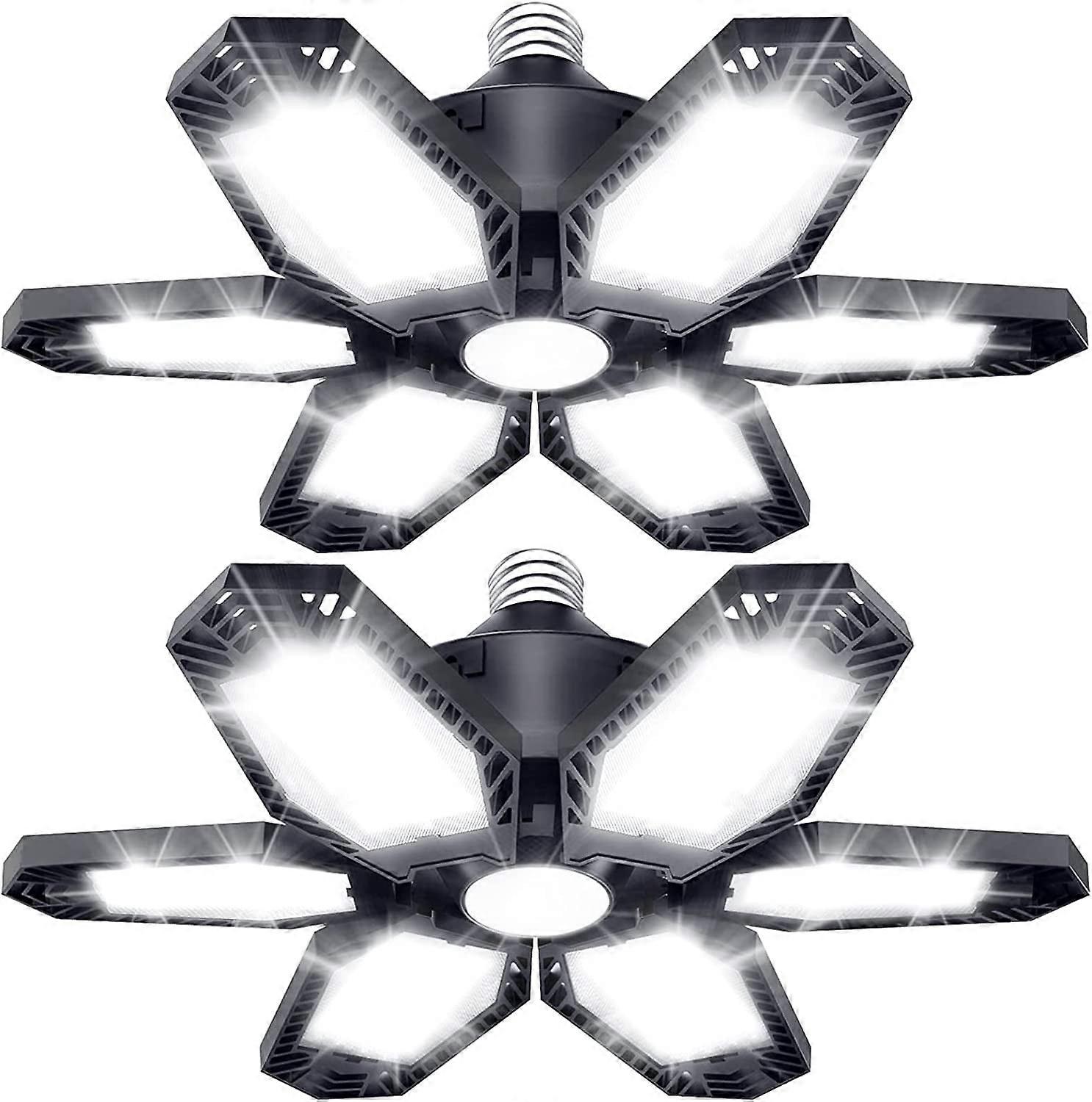 2 Pack 150W LED Garage Lights, 30000LM Total, Deformable with 6+1 Adjustable Panels, E26/E27 Base for Basement, Attic, Shop Ceiling Lighting