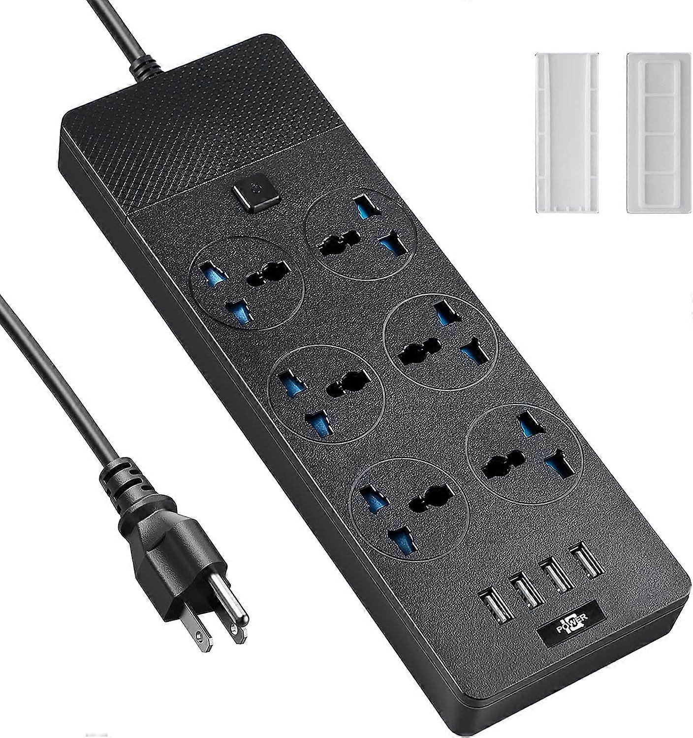 Power Strip with USB Ports, 6 Feet Extension Cord with 6 Wide Spaced Outlets, 110-240v, 3000w Universal Power