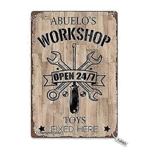 Abuelo's Workshop Open 24/7 Toys Fixed Here Metal Vintage Mirror Decoration Poster Sign For Home Kitchen Bathroom Farm Size: 8 x 12 Inches