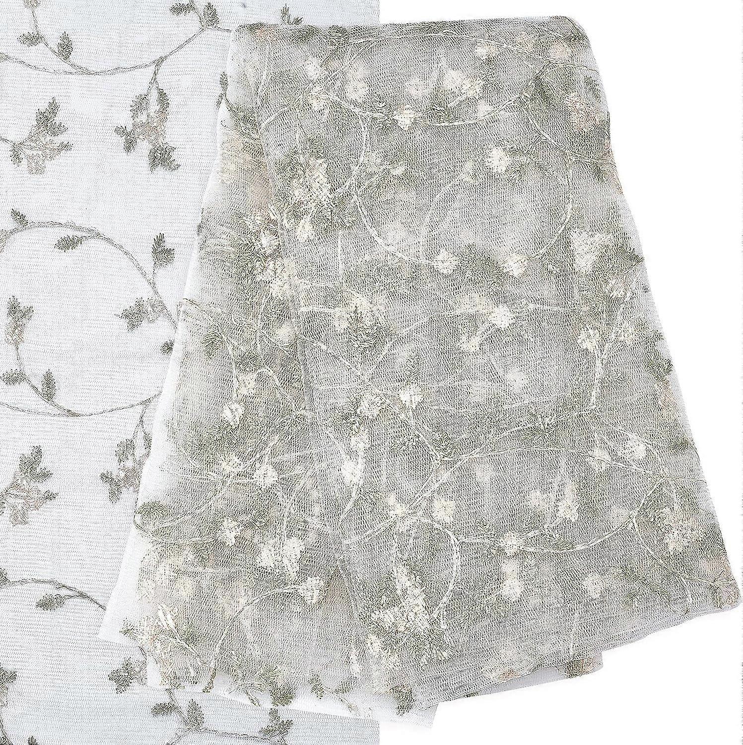 53.5" Floral Embroidered Lace Fabric, White Mesh Applique Trim for Party Dress, Skirt, DIY Sewing Crafts, Clothing Embellishments