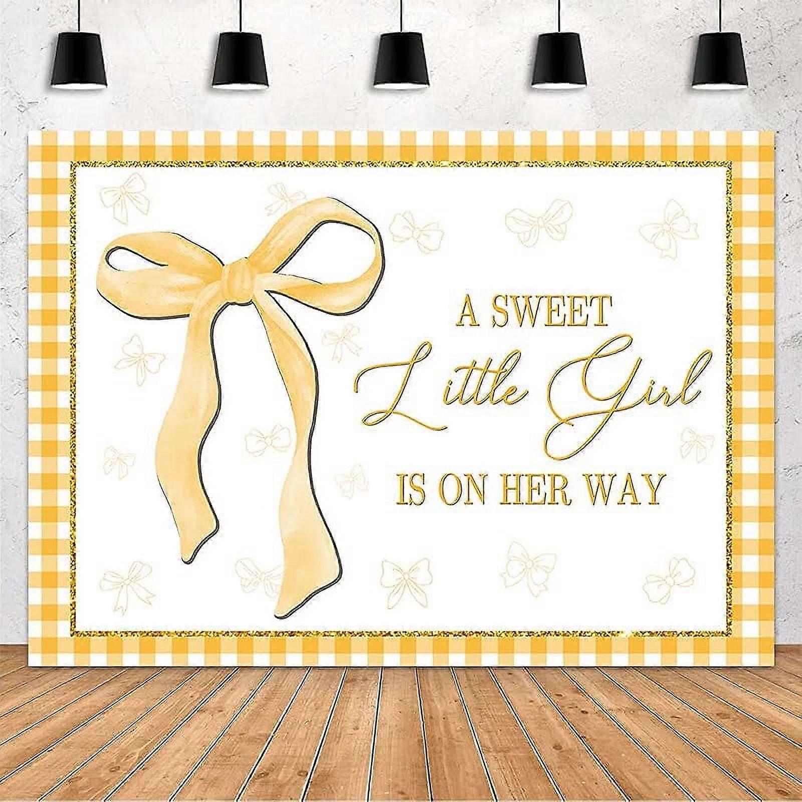 Sweet Baby Girl Backdrop - 7x5ft It's a Girl Baby Shower Banner, Pink & White Checkered Bow, Photo Booth Decor (Compatible with Sweet Baby Girl)