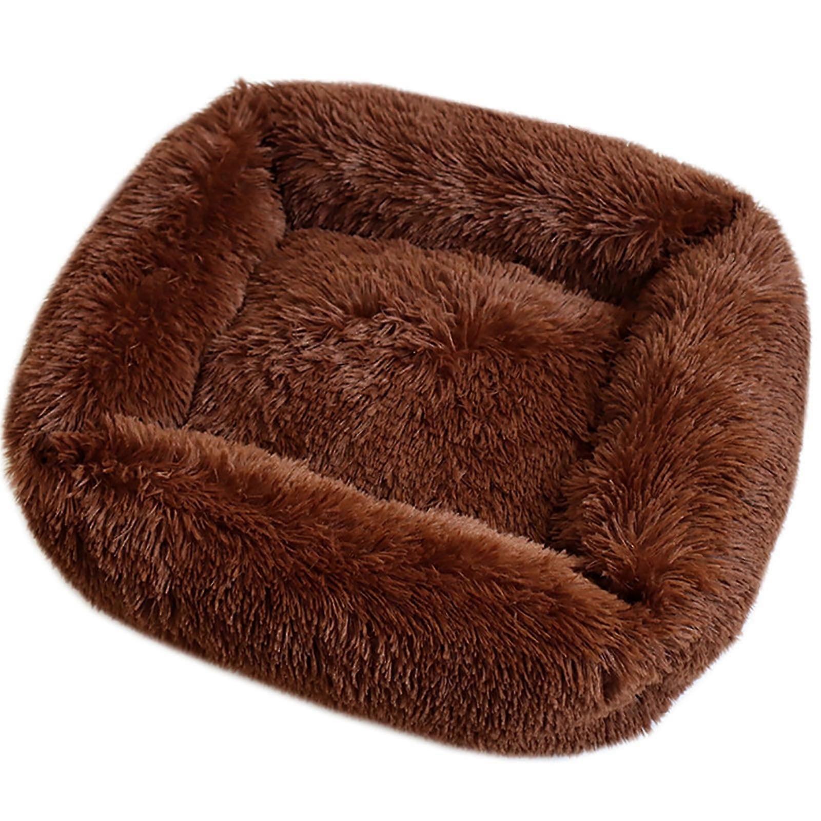 Soft & fluffy self-warming pet bed, compatible with small to medium dogs and cats, machine washable, brown, 1pc