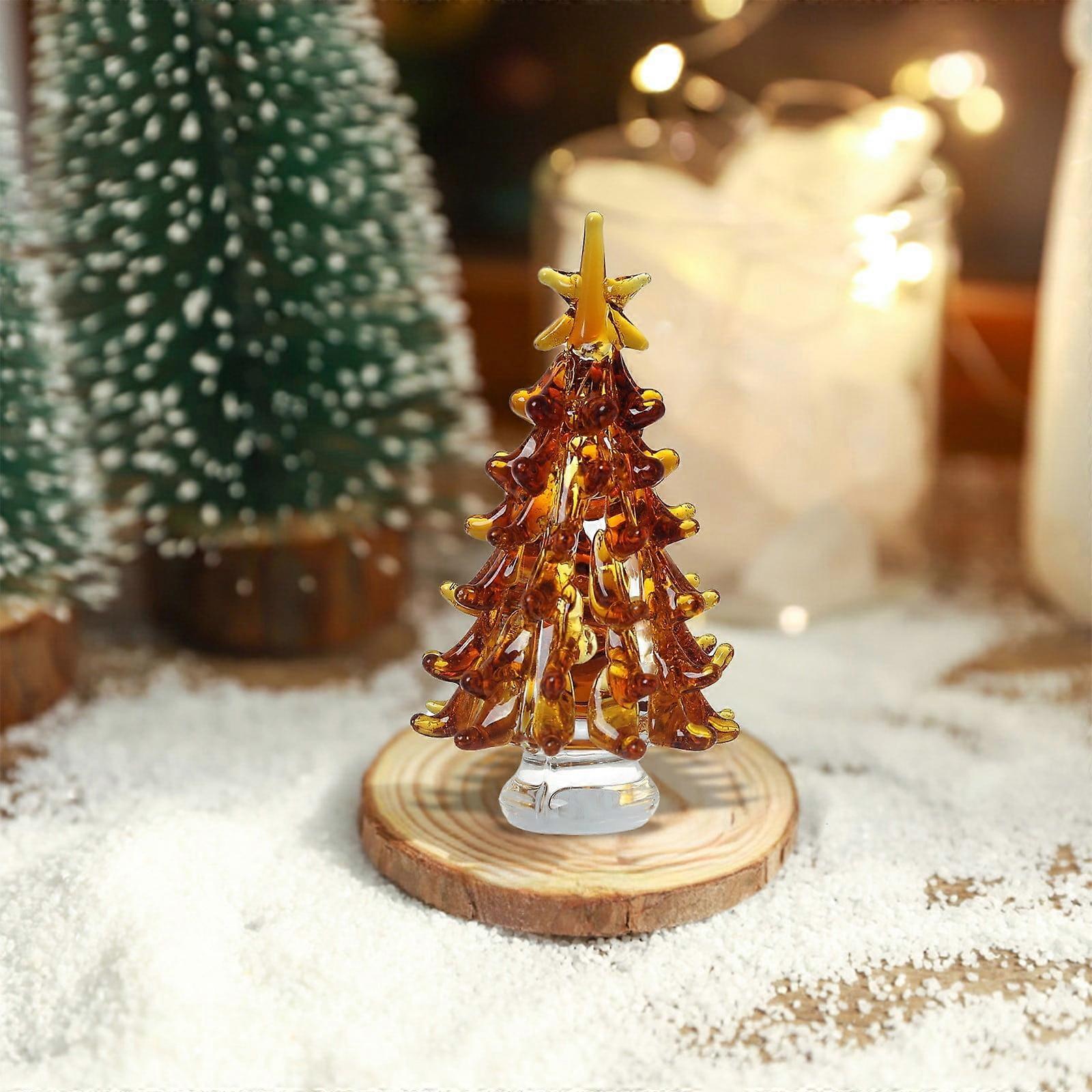 Mini Christmas Tree Glass Ornaments, Small Xmas Decorations, Dollhouse Miniatures for Holiday Crafts, Party Decor