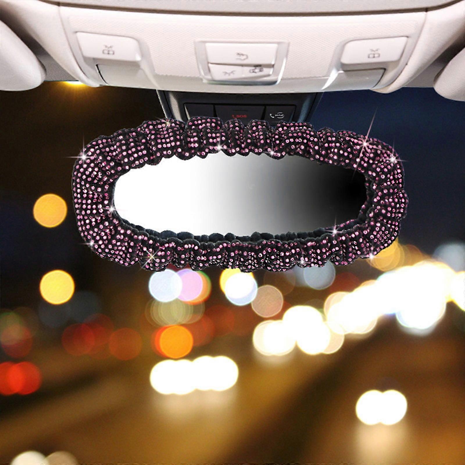 PWPSG Diamond Studded Car Mirror Cover, Pink - Luxurious Plush Accessory for Female Drivers, Compatible with Rear View Mirrors, Shiny Interior Decor,