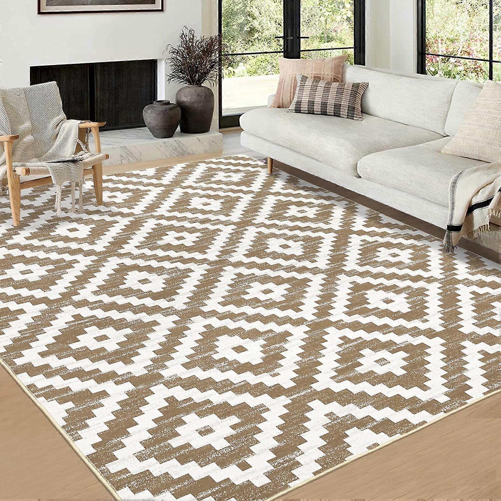 Haperlare Washable Geometric Modern Area Rugs Camel Washable Ultra-Thin Rugs for Bathroom Home Office 5'x7' Rugs