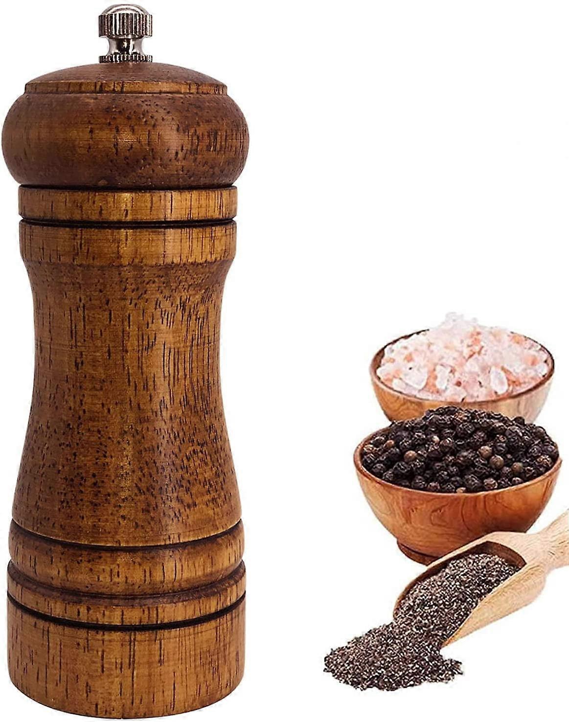 Wooden Pepper Mill with Ceramic Burr, Adjustable Coarseness, Easily Refillable 5 Inch Brown