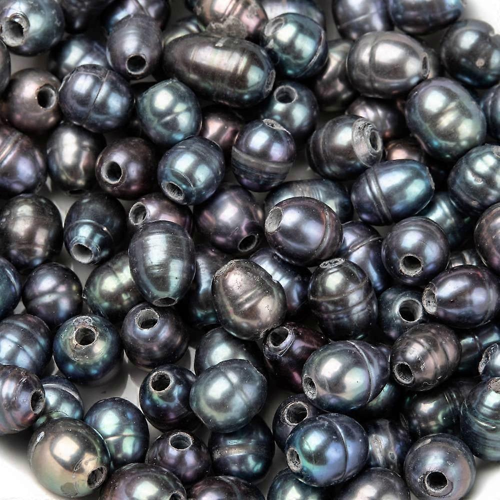 Dyed Black Oval Natural Cultured Freshwater Pearl Loose Beads 7~10x7~8mm Hole: 1.8mm