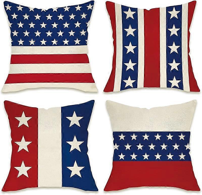 Cotton Linen Attractive Design: This seasonal series of pillowcase is designed with red, white and blue stripes, stars patterns. They are very suitable for decorating the inside of your room in July 4th, Fourth of July, Independence Day, Memorial Day and Veterans Day. And also perfect for decorating outside the house such as courtyard porches Cotton Linen Material: These 4 PCS unique pillow cases are made of high-quality cotton and linen material which are soft and skin-friendly, sturdy and stylish. And when stuffed into the pillow core, it will be more plump and beautiful. This fabric can be washed by hand or machine and stay the same and as new after every wash Easy To Use: The invisible and hidden design of the zipper closure with coordinated color make an elegant look for the pillow cover that is super easy to cram your pillow and filler into this pillow case, which also is very convenient to disassemble and clean Application: These 4 packs holiday toss pillow covers are appropriate for decorating houses. Perfectly matching with your indoor and outdoor home, you can use them to decorate fire place, sofa, bed, car to add more warm atmosphere Ideal gift choice: These pillowcases are perfect gifts for friends and relatives during festivals and warm holidays. These pillowcases can not only be given as birthday gifts to children, but also to neighbors, friends and family or teachers to express good wishes