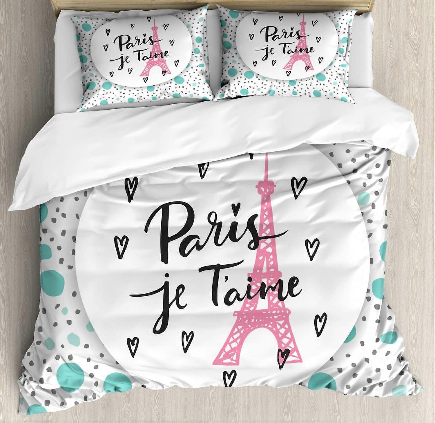 Paris Duvet Cover Set, I Love You Lettering, Europe Architecture Print, with 1 Duvet Cover & 2 Pillowcases, Turquoise Grey
