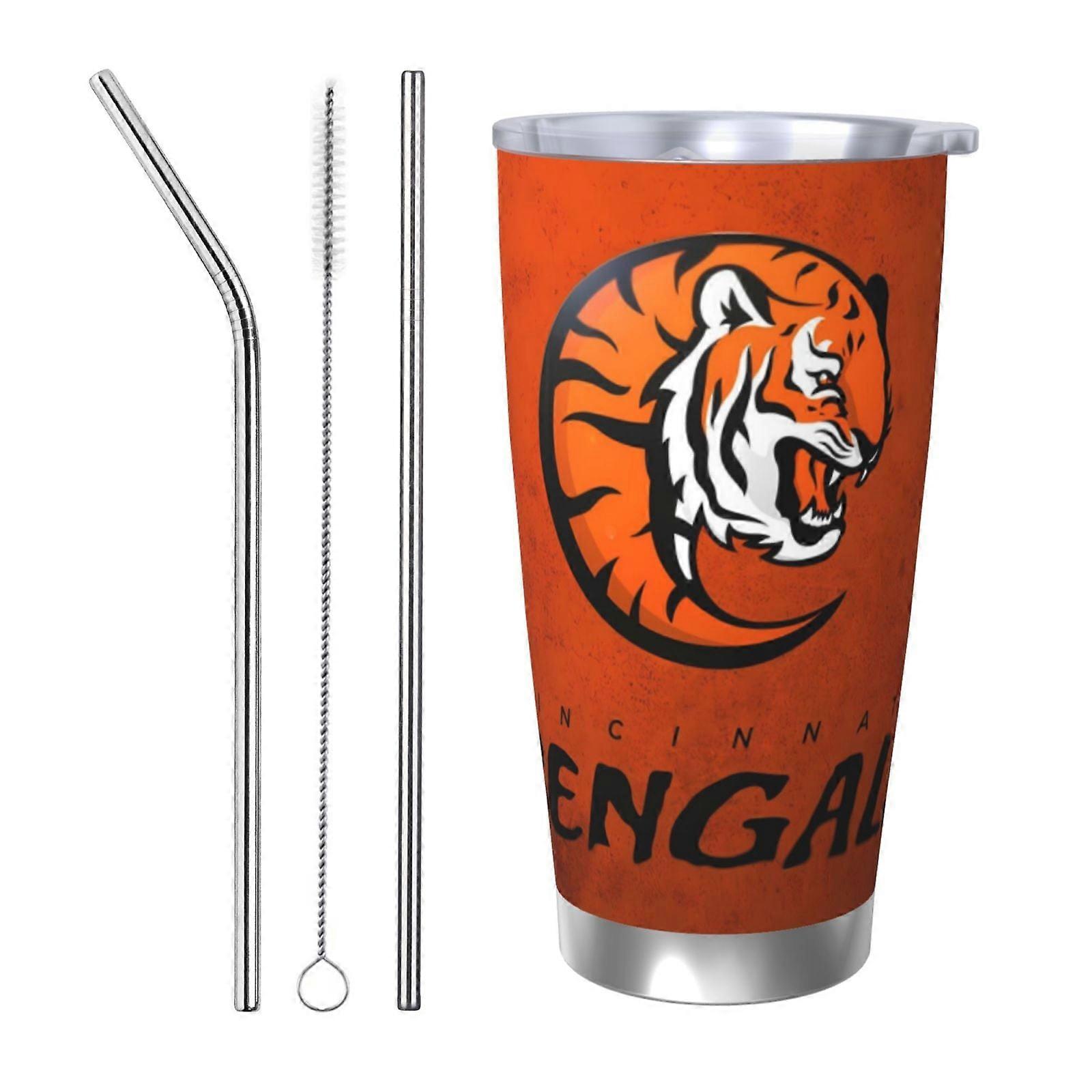 Bengals Football Team 20oz Stainless Steel Thermos Cup with Lid & Straw - Compatible with Car Cup Holders, Hot & Cold Drinks, Coffee, Sports, Holiday