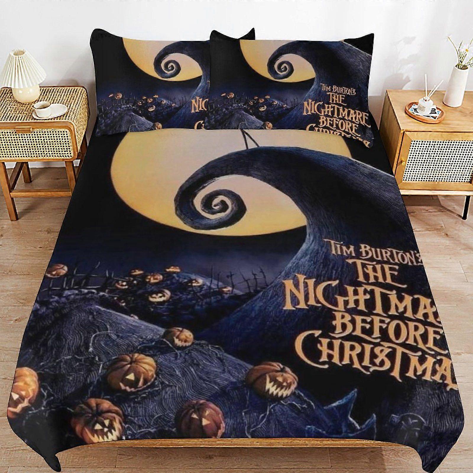 A595 The Nightmare Before Christmas Streamlined Finish Soft Texture Durable Composition Zipper Side Duvet Cover Sets Night Use N595