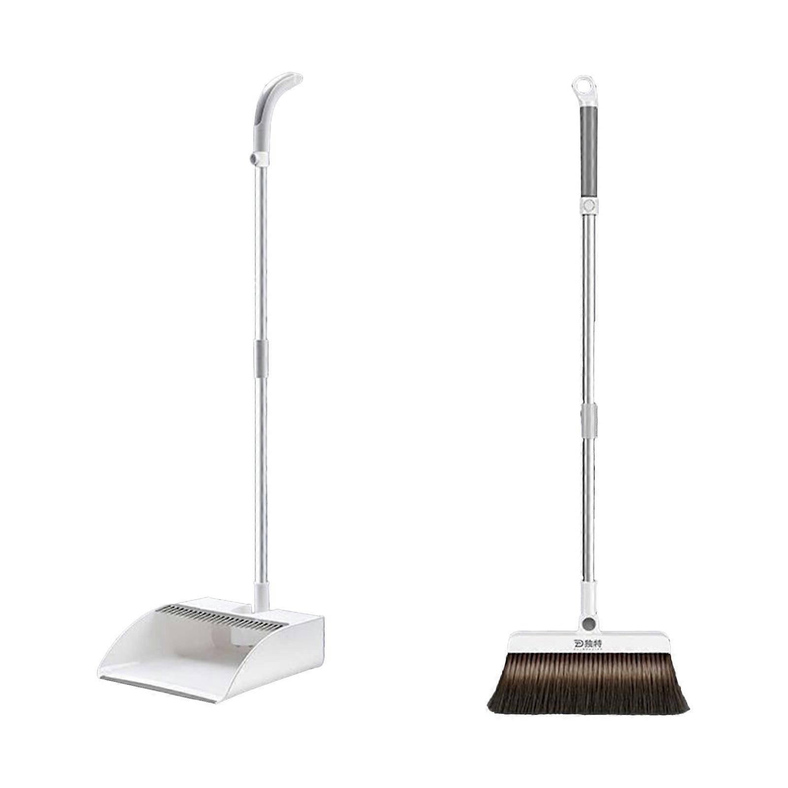 Fnyoxu Household Brooms And Dustpan Kit, 30 Inch Long Handle, Light Weight, 180 Degree Rotation, Vertical Dustpan With Comb Teeth