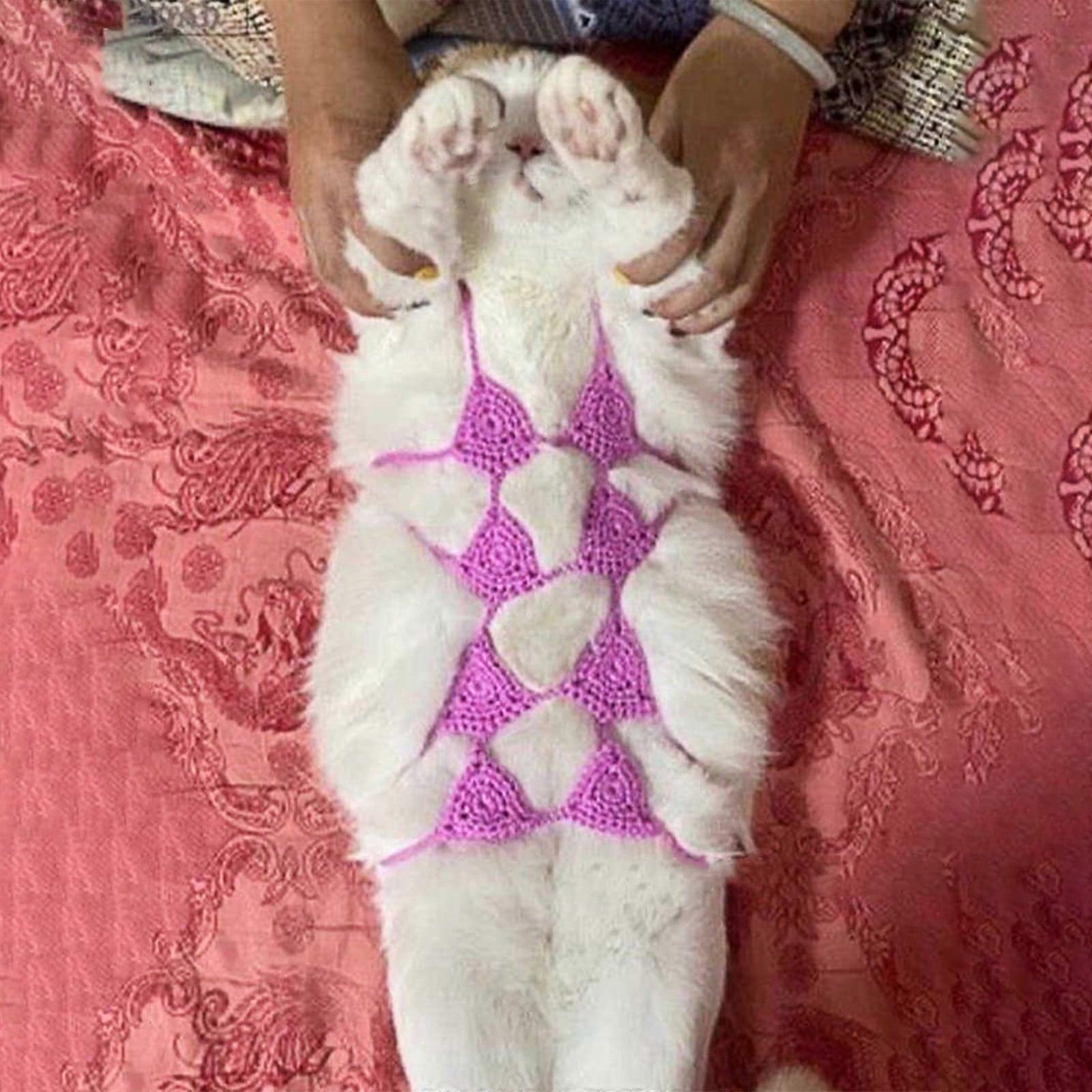 WJSXC Pet Cats BikiniPure Handcrafted Cats Costume Funny Pet Clothes Small Dog Costumes Clothes Hot Pink