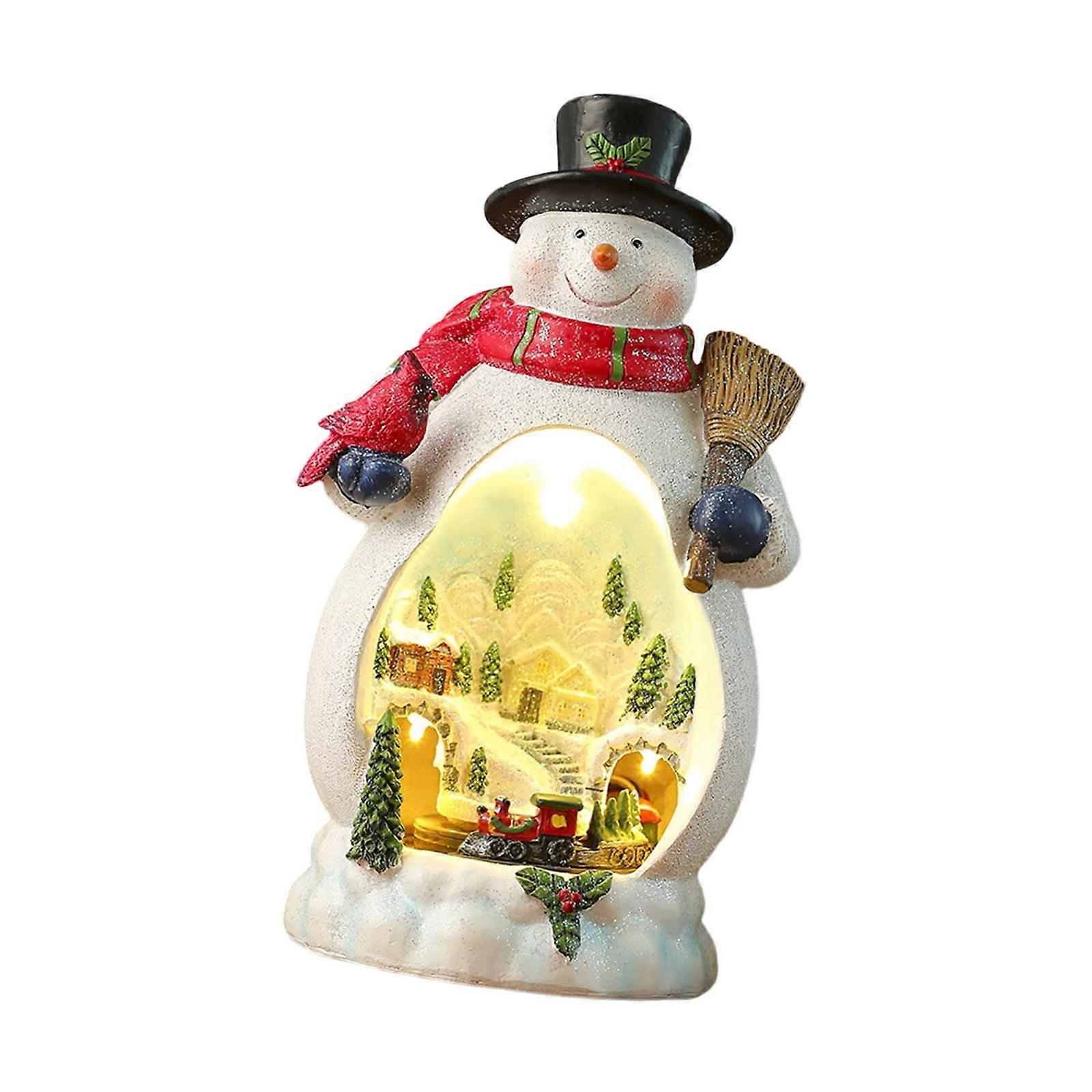 Christmas Snowman Music Box with Rotating Train Santa Music Box Lighted Christmas Cabin for Kid Adult Christmas Present Multicolor
