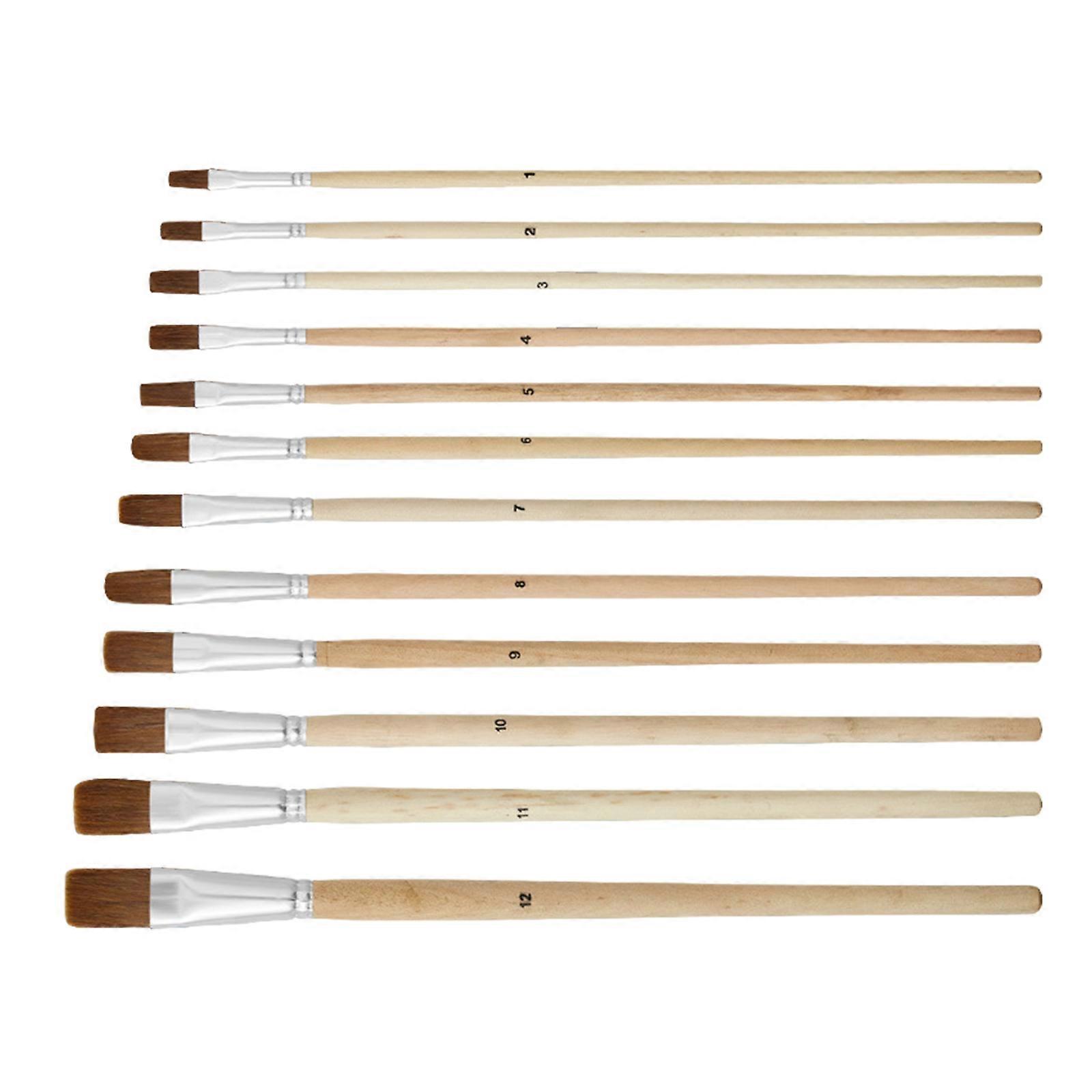 12 Pcs Wolf Hair Painting Brush Artist Paint Brushes Flat Paint Brush Set Watercolor Paint Brush Drawing Supplies Multicolor