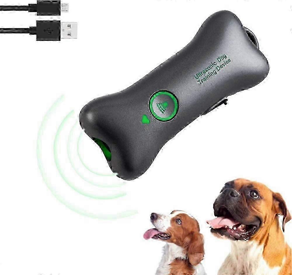 EFFECTIVE ANTI BARKING DEVICE. With the latest ultrasonic technology, dog training device is suitable for dogs of all breeds and sizes. The most harmless and humane way to keep your dog and your neighbors dog from barking! It can be used as a dog repellent device and a dog training aid tool to stop dogs' bad behaviors, such as endless barking, digging, and fighting. SAFE AND FRIENDLY FOR DOGS AND HUMAN. With newest ultrasonic technology, this stopping barking device is harmless to the dog's hearing and will not cause physical harm. Facts have proved that the sound frequency between 25-30Khz can not be heat y human. It can easily grab dogs attention and improve their bad behaviors. Consistent training is required to achieve effective and long-lasting results. SUPER EASY ONE-CLICK USE. Every time your dog makes mischiefbarking, leash pulling, jumping, etc., simply press the button and point the ultrasonic dog training clicker directly at him. Different dog breeds may react differently to the ultrasonic sound.For optimal effect, Once dogs having stopped barkings or unwanted behaviors ,Please congratulate and reward them, to make them understand what we expect from them. PORTABEL SIZE FOR INDOOR AND OUTDOOE USE. This dog barking control device is lightweight and small in size, and can even be easily placed in your jeans pocket. You can carry it at any time to intensively train your dog. It is very suitable and convenient for outdoor and indoor use. USB RECHARGEABLE DOG BARK DETERRENT. Comes with the USB cable, the bark stopper can be fully recharged in 5 hours, and our dog bark device can continuously work for 15 days.