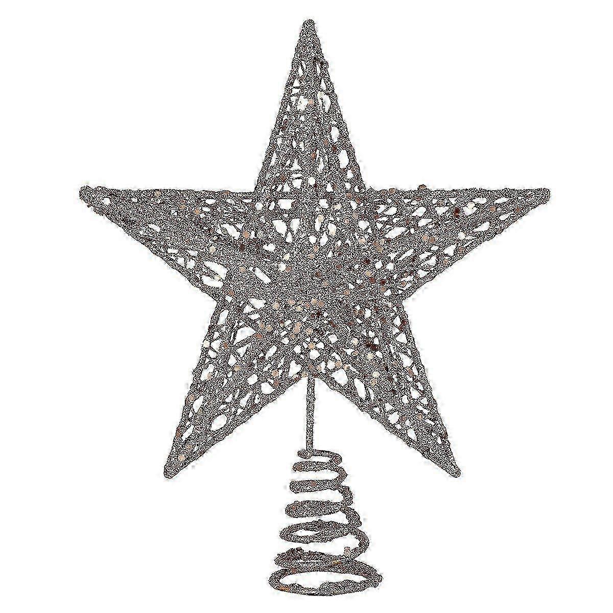 Amosfun 20cm Christmas Tree Iron Star Topper Glittering Christmas Tree Decoration Ornaments (Rose Gold) ws