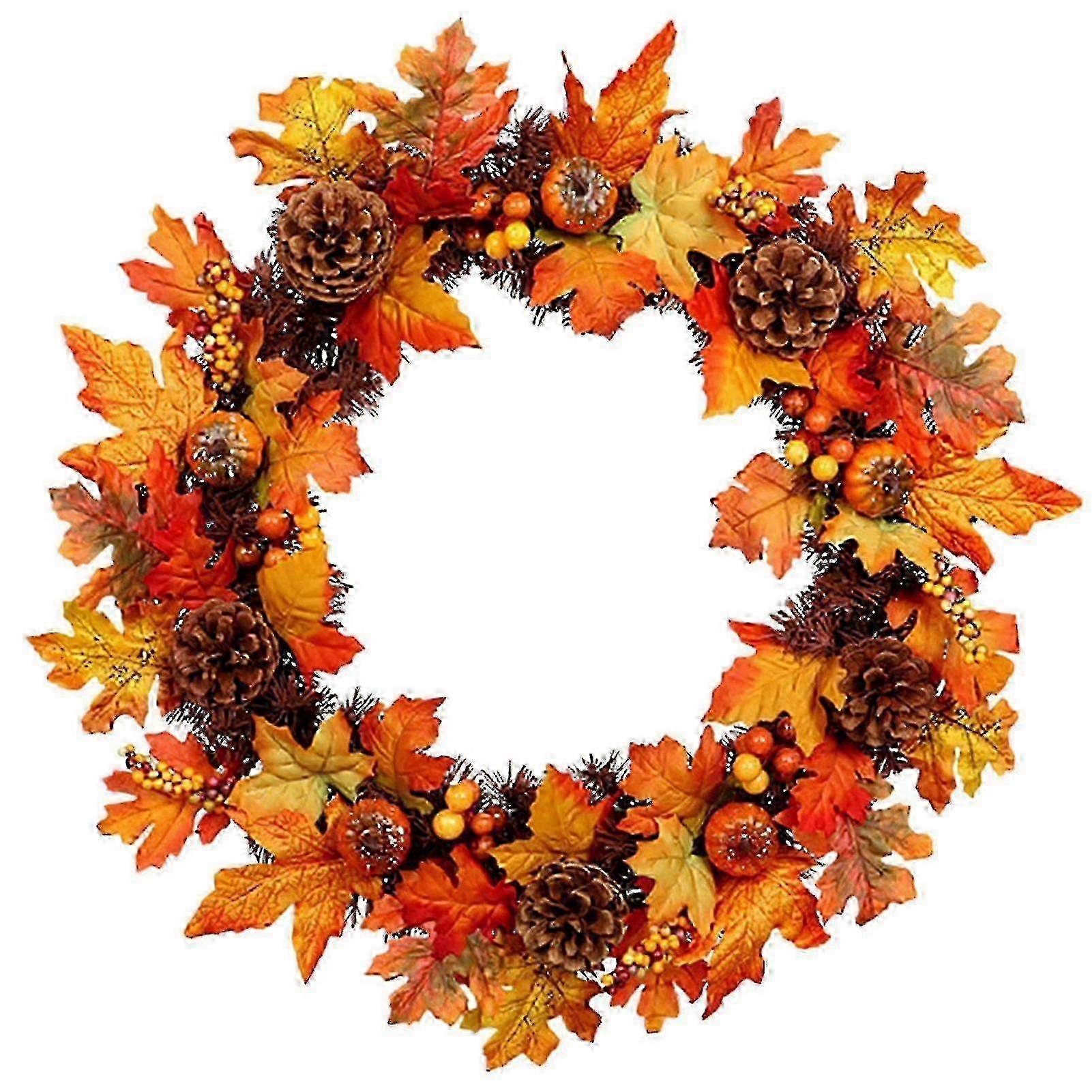 Thanksgiving Door Garland with Simulated Pumpkins, Maple Leaves & Pine Cones - Seasonal Home Decor ws