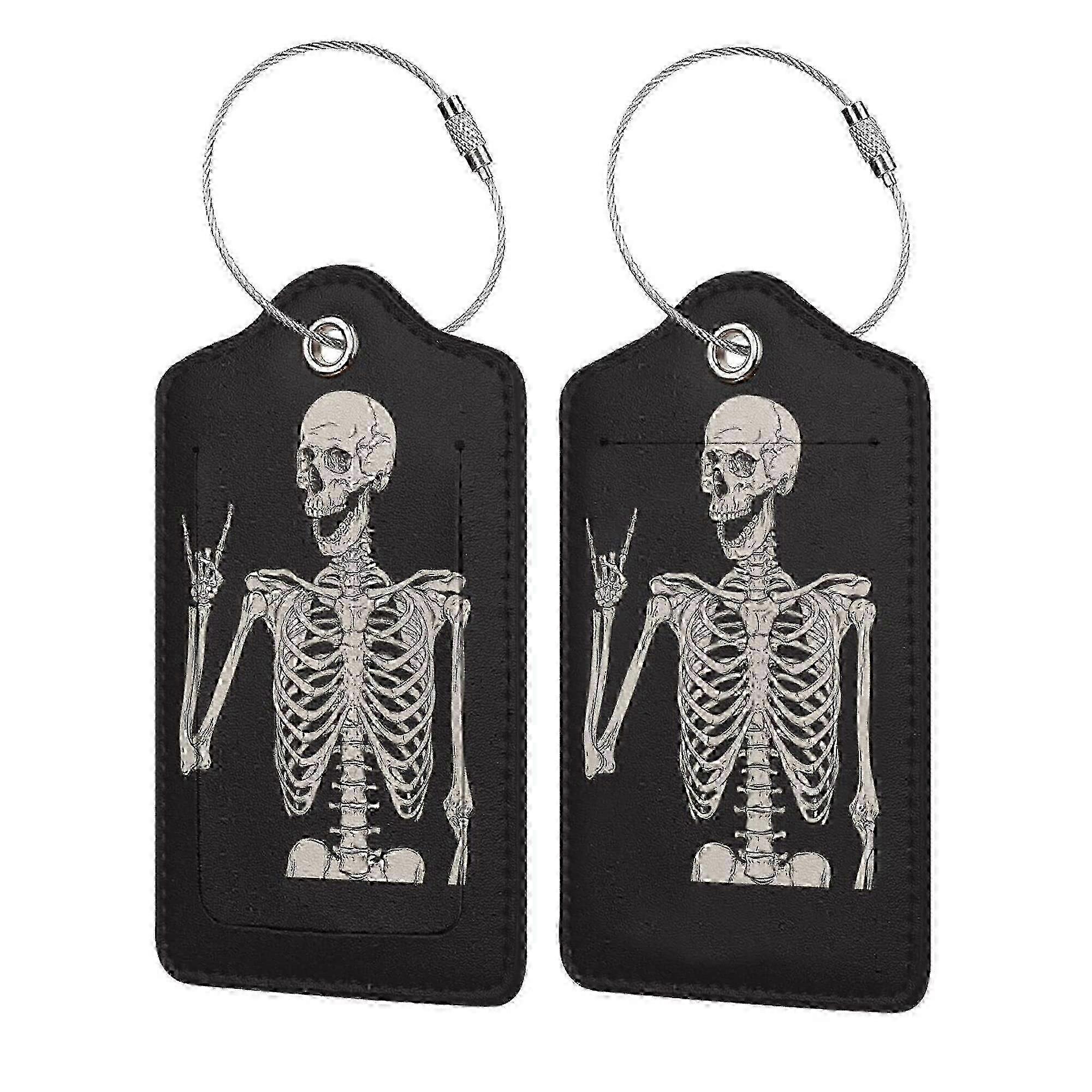 2 Pack Luggage Tags Skull Rock and Roll Cool Leather Travel Bag Labels for Adults Tourists ws
