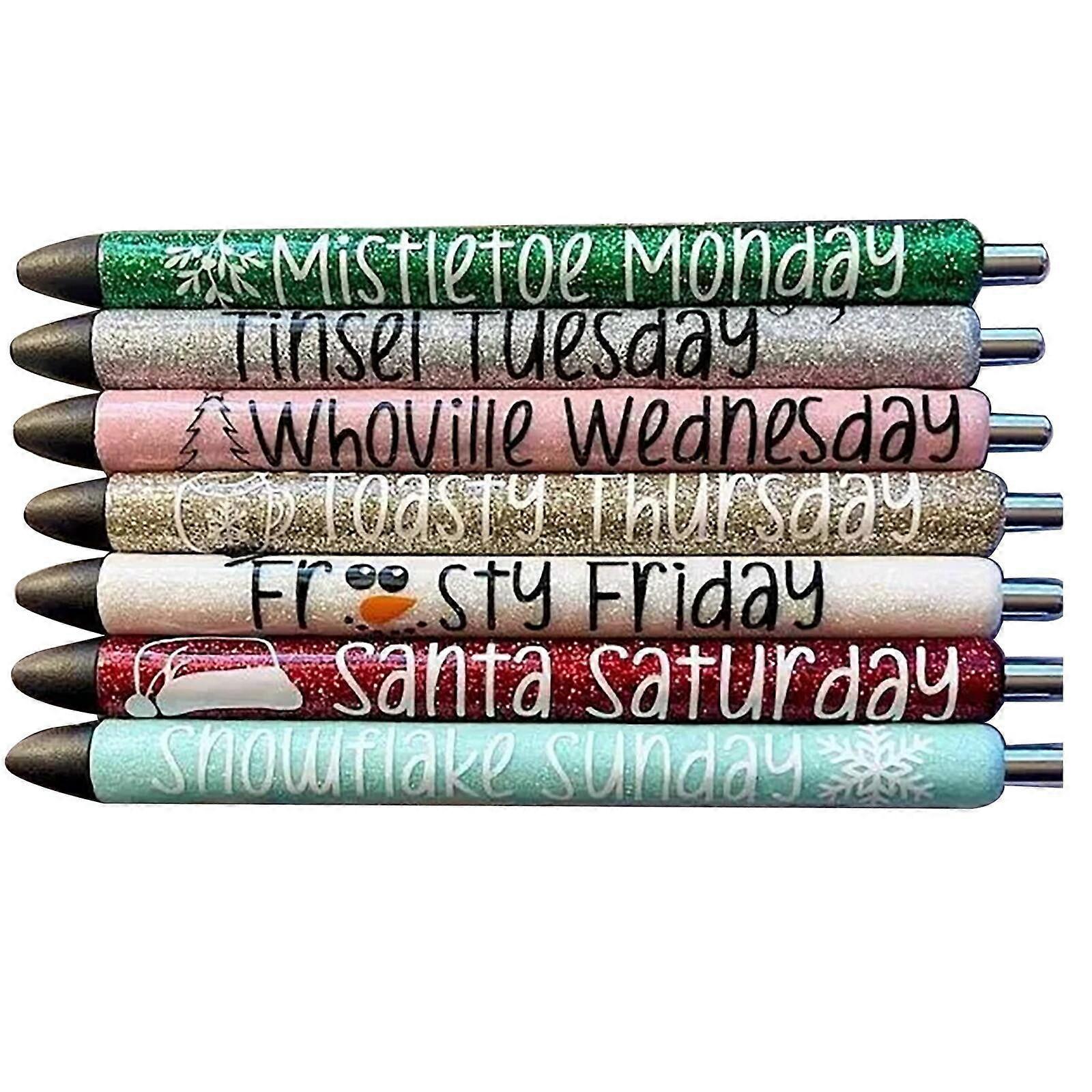 Poaug Pen 7Pcs Funny Glitter Pens Set, Compatible with Halloween & Weekday Office Decor, Witchy Gifts, 8ml