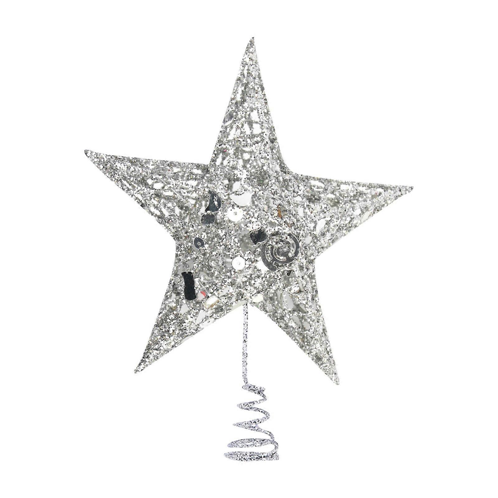 Christmas Tree Top Decoration, 20cm Silver 3D Hollow Five-Pointed Star Pendant – Compatible with Begine Clearance