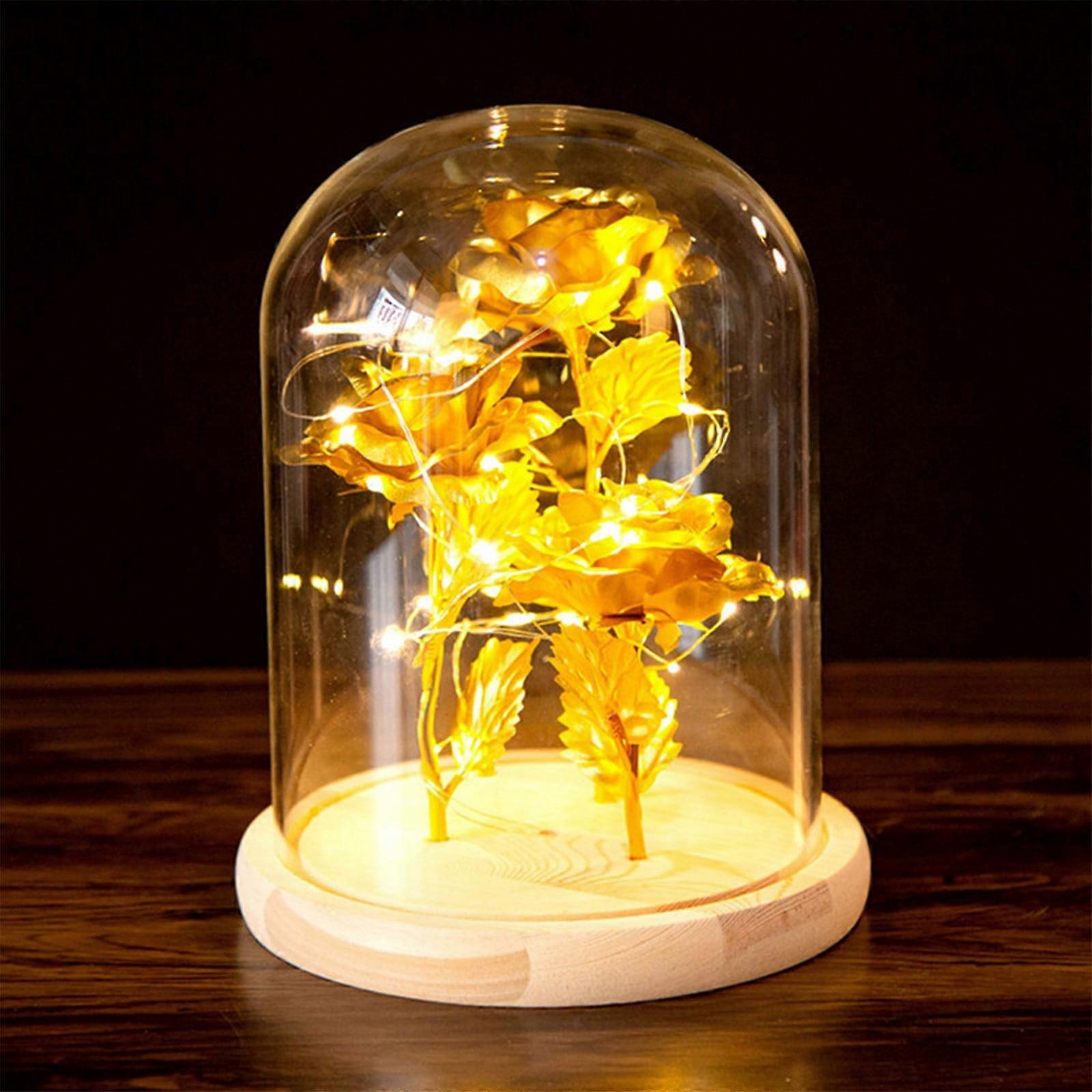 Yakbaofuo 3 Gold Foil Roses Glass Lamp LED Ornament, Creative Decor Gift Compatible with Valentine's Day, Christmas, Halloween