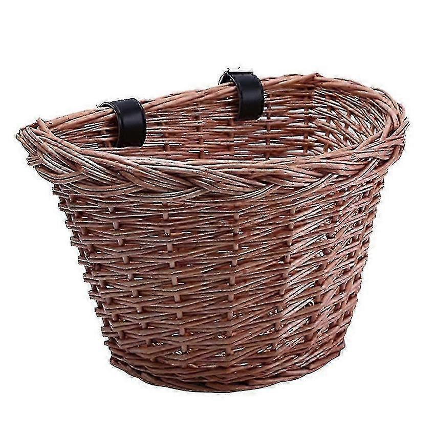 Portable Wicker D-Shaped Bike Basket Hand-Woven Shopping Basket 40x25x25cm