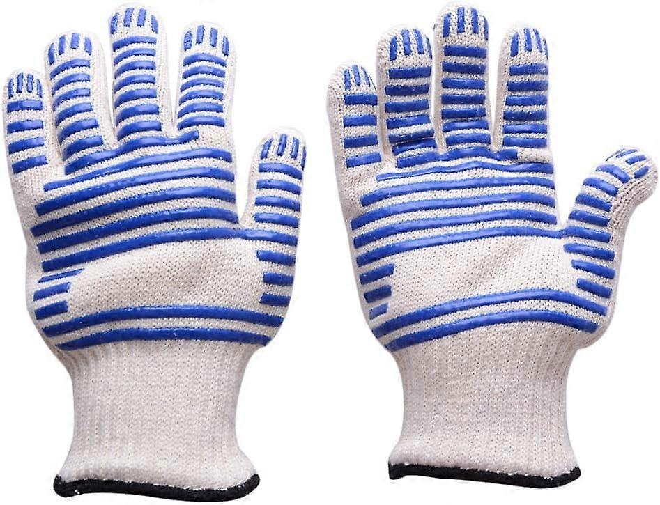 BBQ Gloves 572℉ Heat Resistant, Silicone Non-Slip Oven Mitts for Grilling, Cooking, Baking - 1 Pair (Blue)