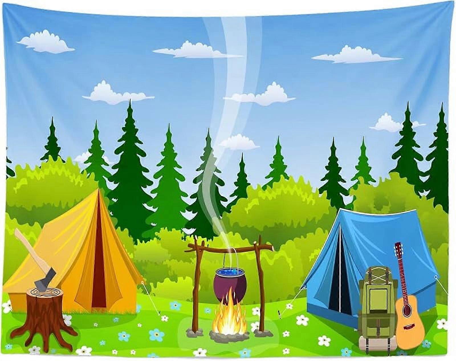 9x6ft Camping Forest Smores Backdrop, Compatible with Cartoon Scene Tapestry, Party Birthday Baby Shower Decor for Classroom Photo Booth