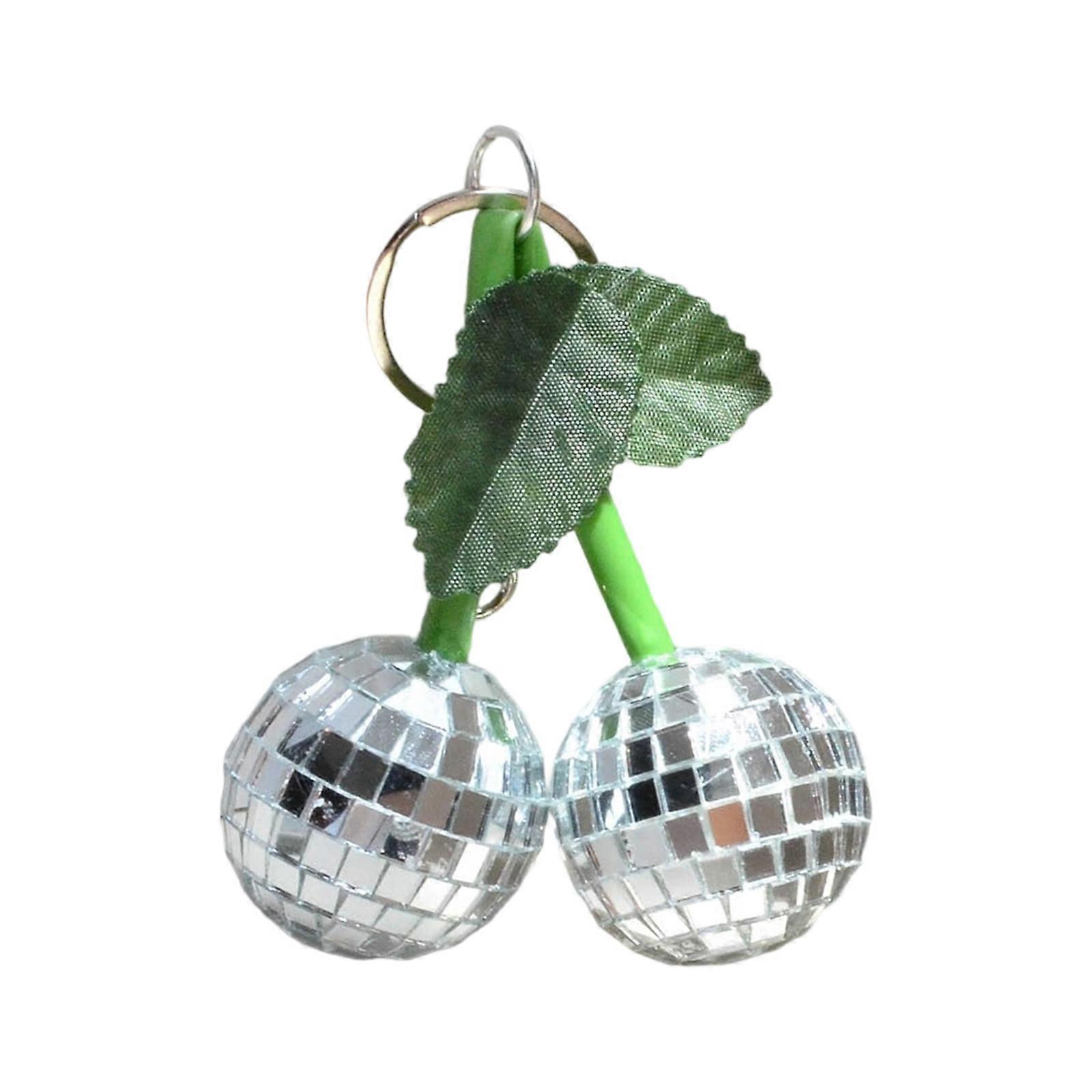 Sparkling Disco Cherry Mirror Pendant Keychain Bag Charm Glossy Retro Accessory For Keys Purse Decoration Silver