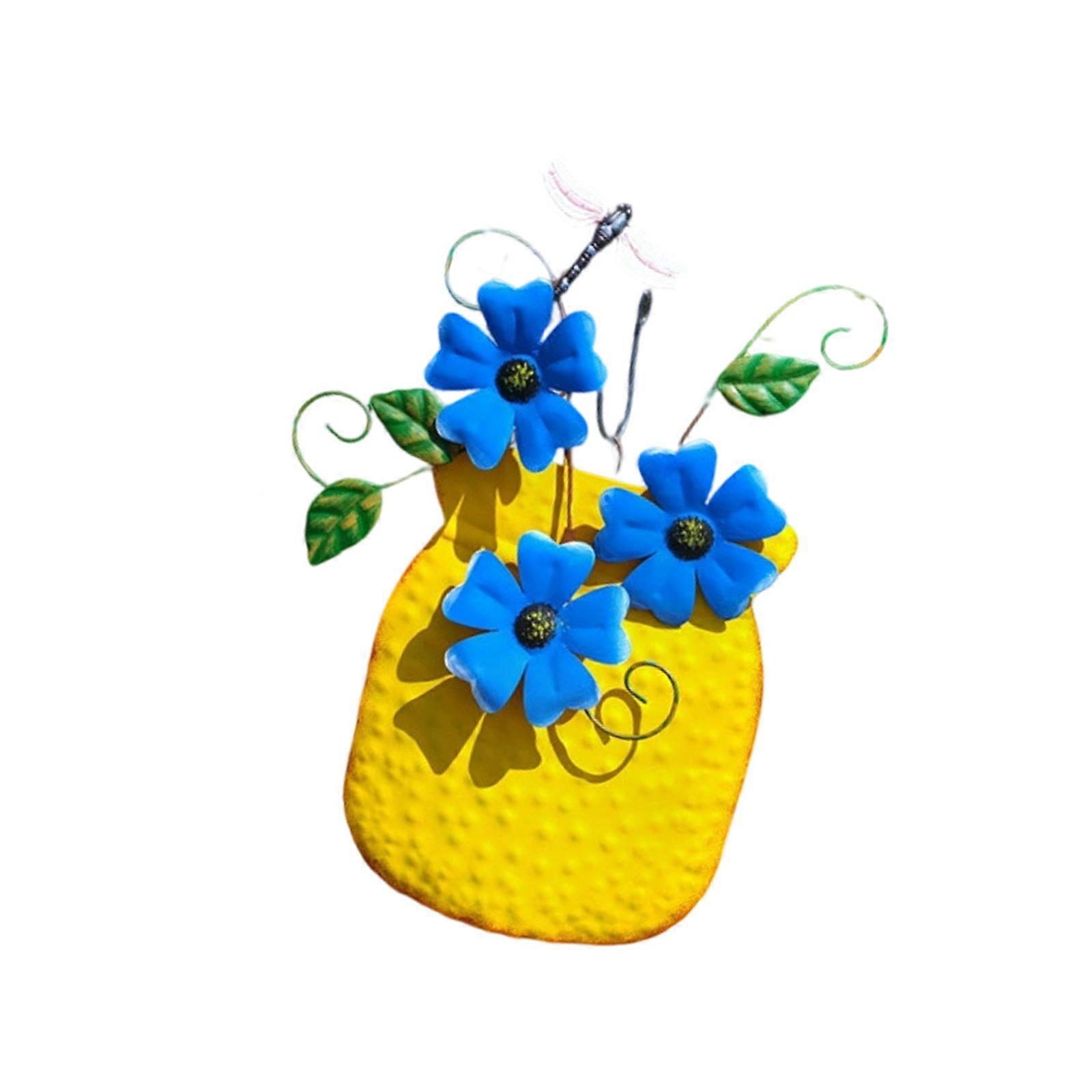 Rural Iron Wall Flower Vase For Climbing Plant and Flower Display Handpainted Easy Mounted Iron Art Decors for Garden Yellow