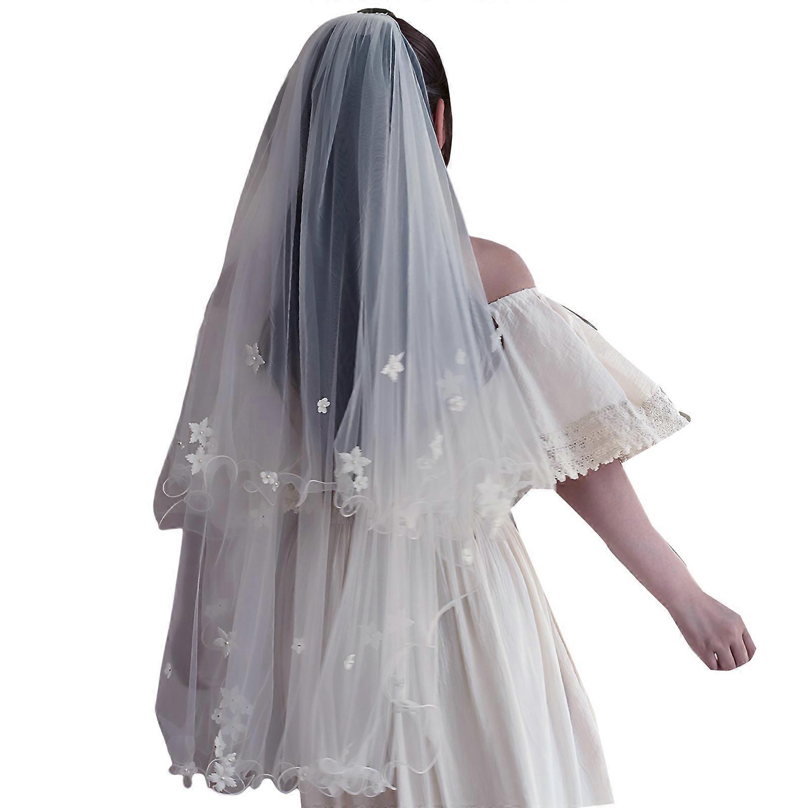 Double Layer Wedding Veils Flower Embellished Wedding Veils With Metal Comb for Weddings Parties Cosplay Event Multicolor