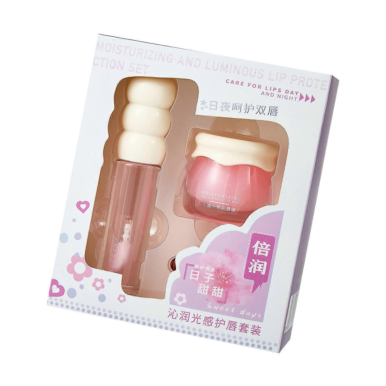 Lip Mask with Lip Gloss Set Hydrating Plumping Lip Care for Dry Lips Overnight Moisturizer Softens and Repair Lips Multicolor