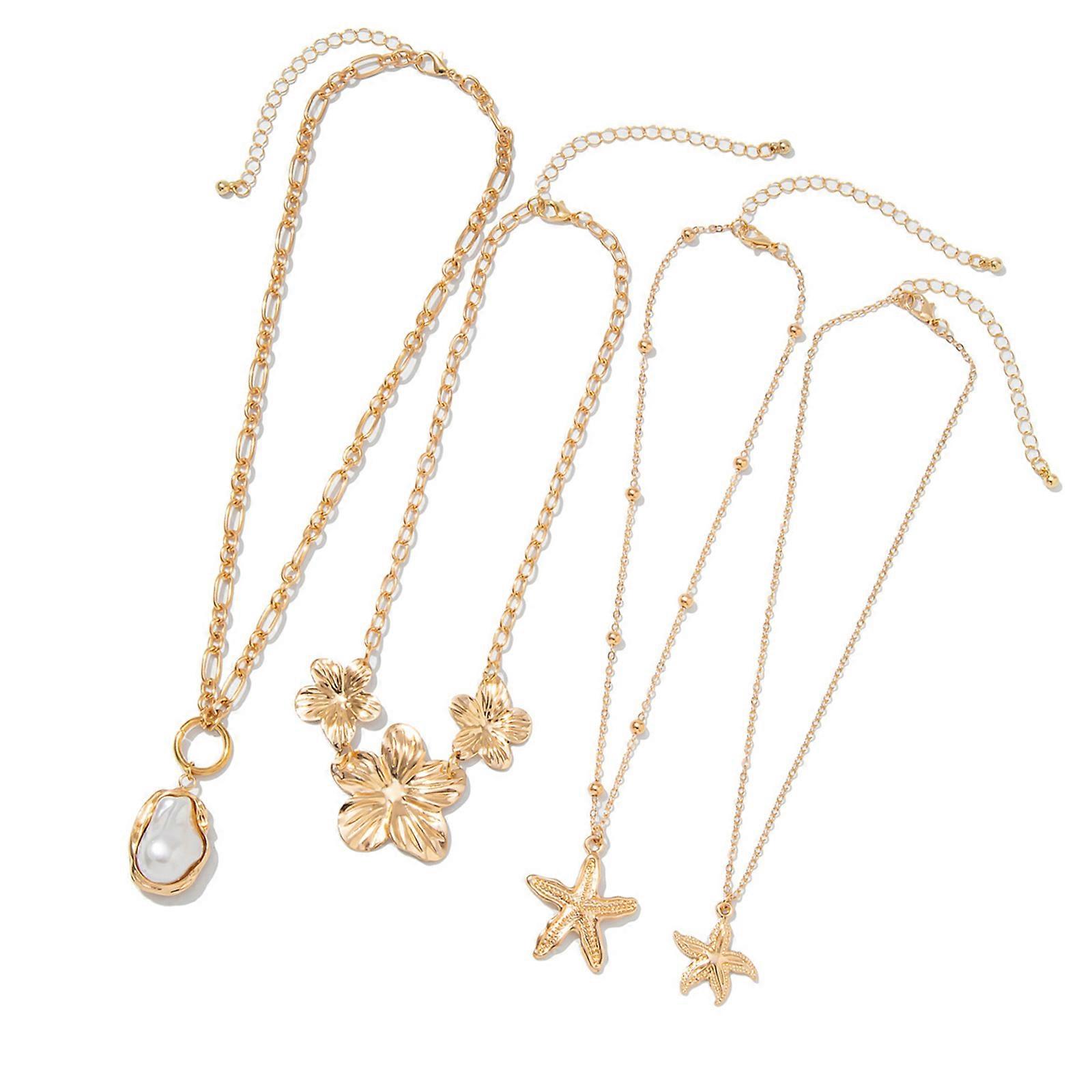 Starfish Shell Pearls Stackable Necklace Gold Clavicle Chain Jewelry Set For Women Beach Party Summer Accessories Multicolor
