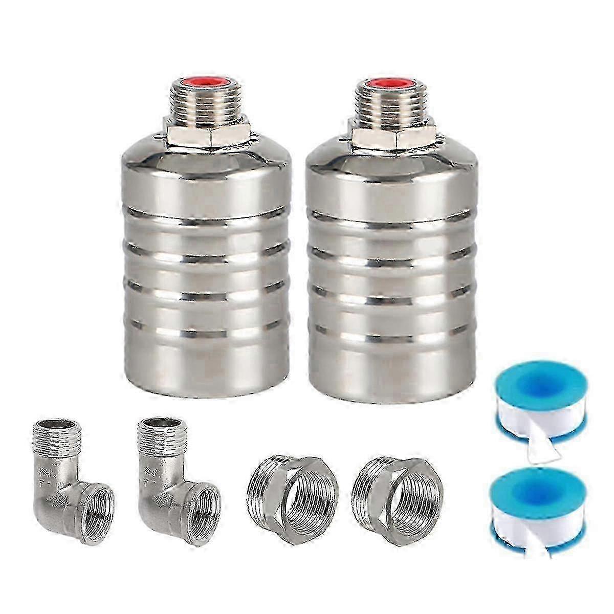 2 Pack 1/2inch 3/4inch Auto Fill Shut Off Water Tank Float Valve, 304 Stainless Steel Water Level C s