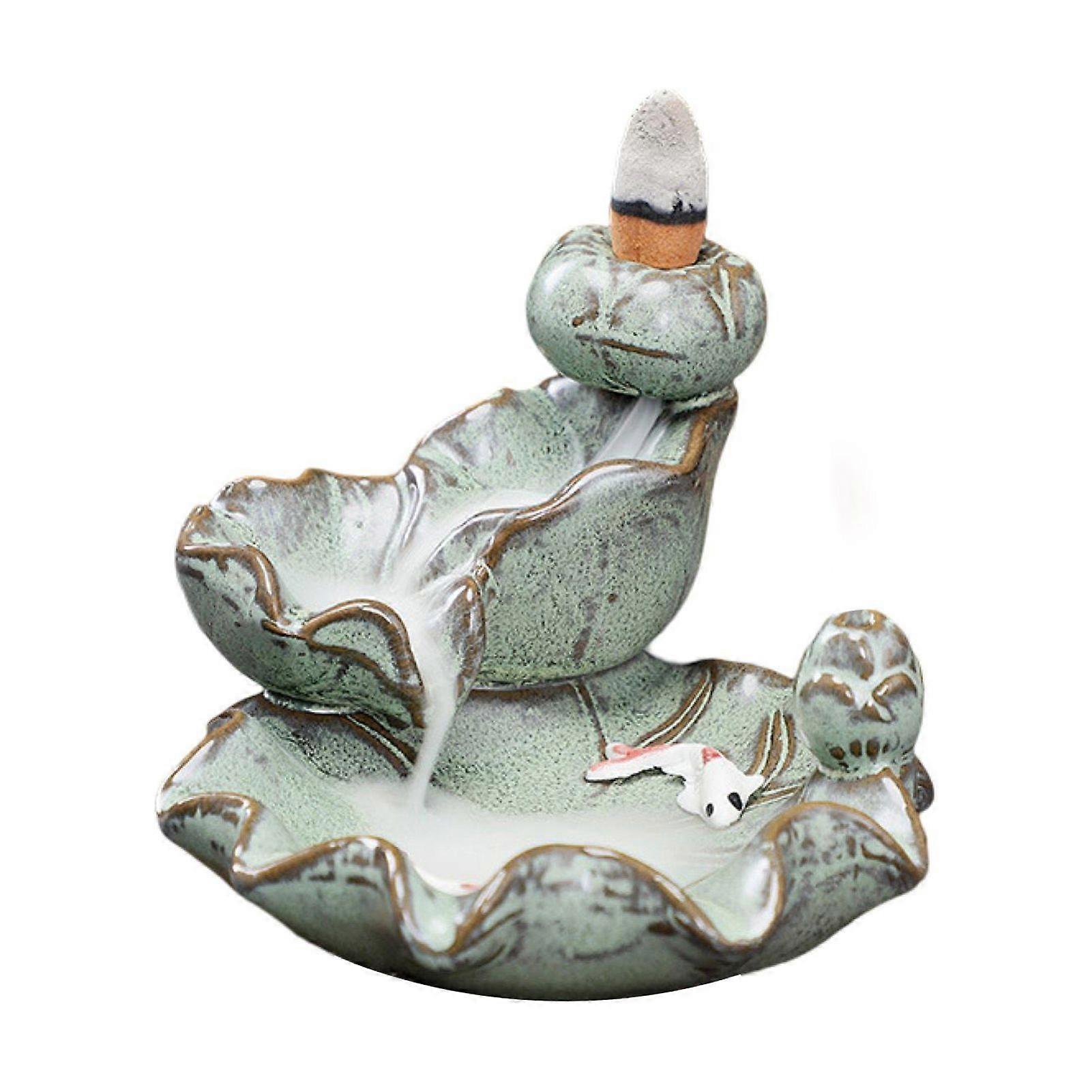 Backflow Incense Burner Relaxing Healing Calm Emotion Glossy Ceramics Lotus/Mountain/Fish Design Incense Holder Ornament Home Supply-Green