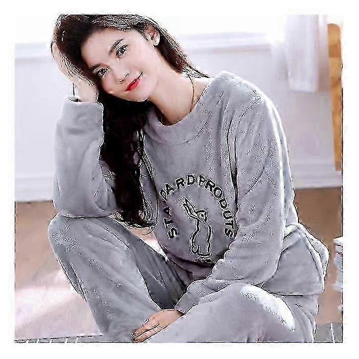 Flannel Autumn and Winter Pajamas Women's Round Neck Loose Plus Velvet Girl Sweet Home Casual Warm Home Service Suit w