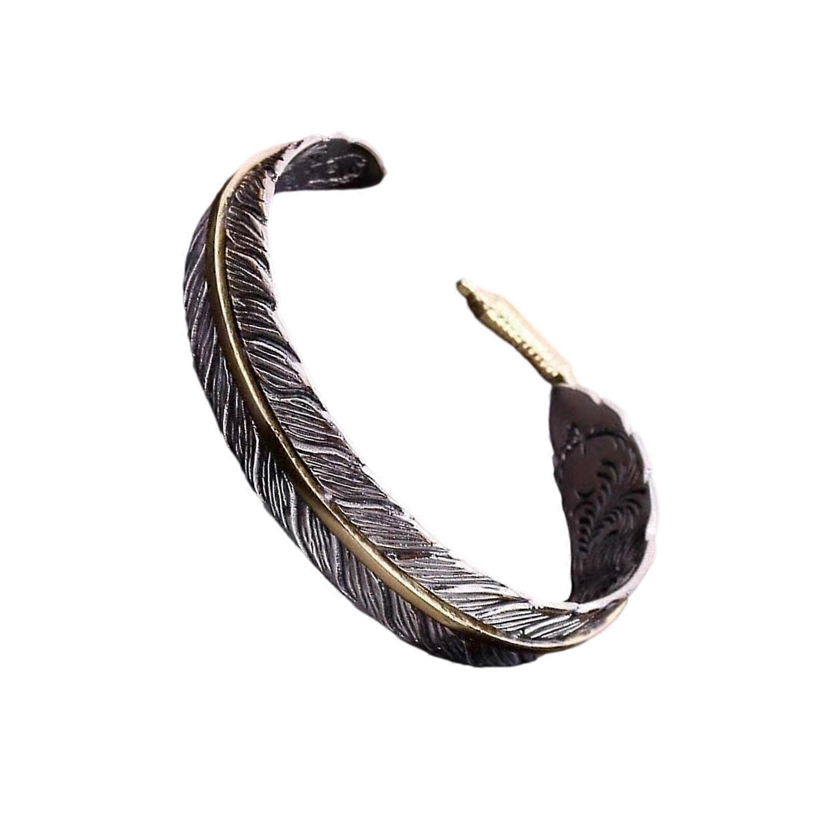 Distressed Ethnic Silver Feather Jewelry Adjustable Open Bracelet Unisex Cuff Bangle Handmade Gift Elegant Jewelry Multicolor