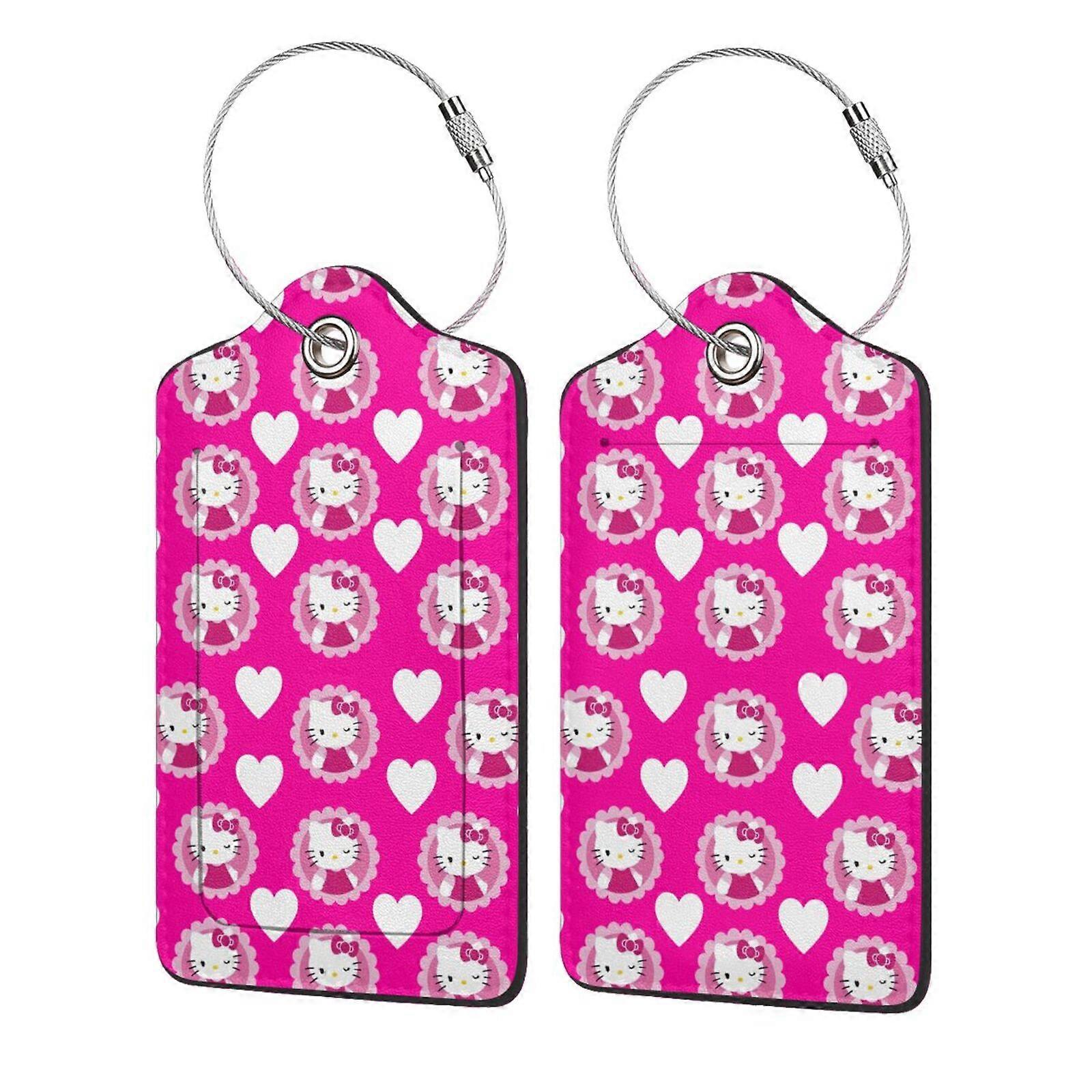 Hello Kitty 2Pc Stainless Steel Leather Luggage Tags, Waterproof ID Holder, 2.9" * 4.6", Compatible with Travel Accessories