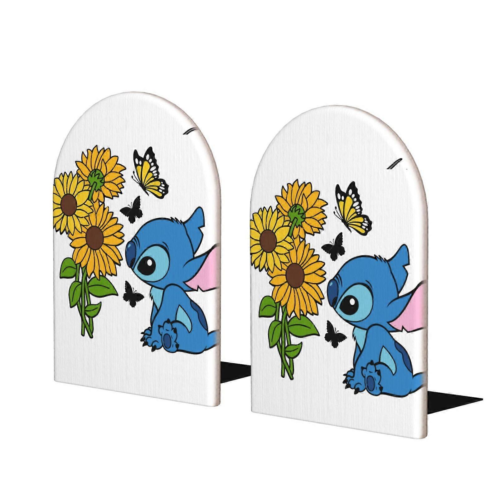 2 Pack Bookends Cute Cartoon Stitch Book Stopper Heavy Duty Premium Metal Decorative Book End Supports For Kids Shelves Room Office-A34