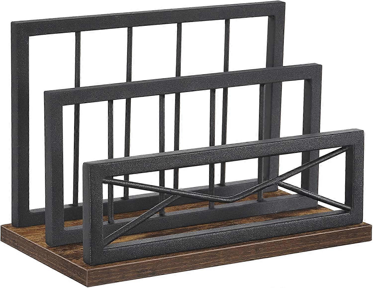 Desktop Mail Organizer with 2-Slot Matte Black Metal, Compatible with Home or Office Desktop, Rustic Brown Storage File Holder